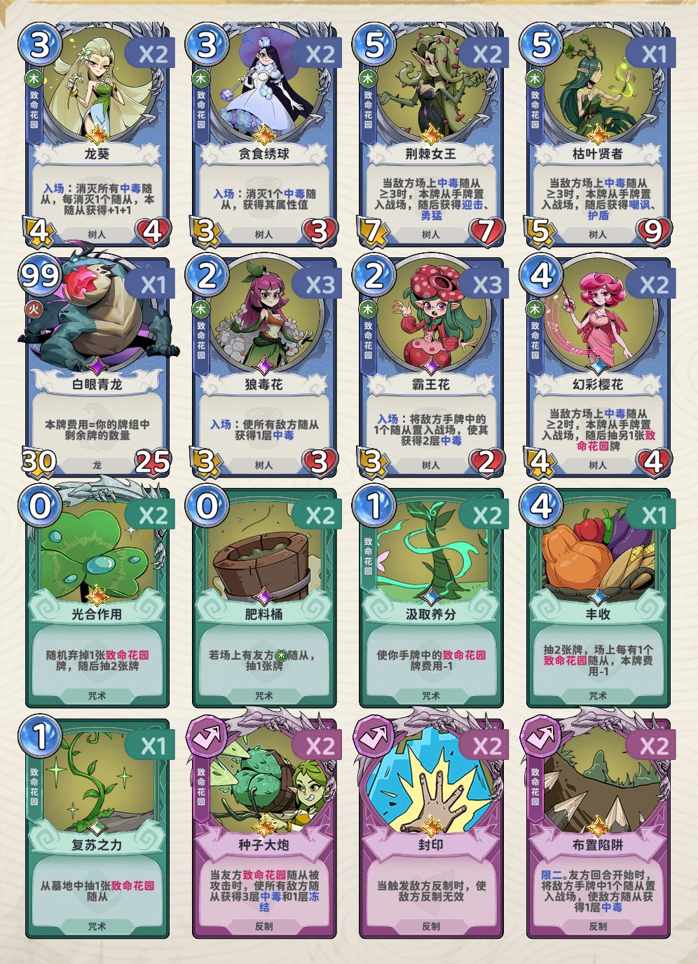 通关卡组: 复仇树精,欲望泥潭,金刚,南瓜王,寻宝狗头人 种族搭配:战士,野兽,自然,机械 树苗可以说是所有1星中最强的神,性价比极高。 前期拿到树苗,前面的怪,基本上都可以打过留着金币升级就好了,升级给的加属性的,优先拿加攻击的,直接加攻击给树苗。完全不用担心会亏。 这时候到后期不想要树苗了,这时候就可以拿出另一张牌了 这时候你就会发现前期升级拿的加属性的牌一点都没有亏,即使魔法树苗被你卖出去了