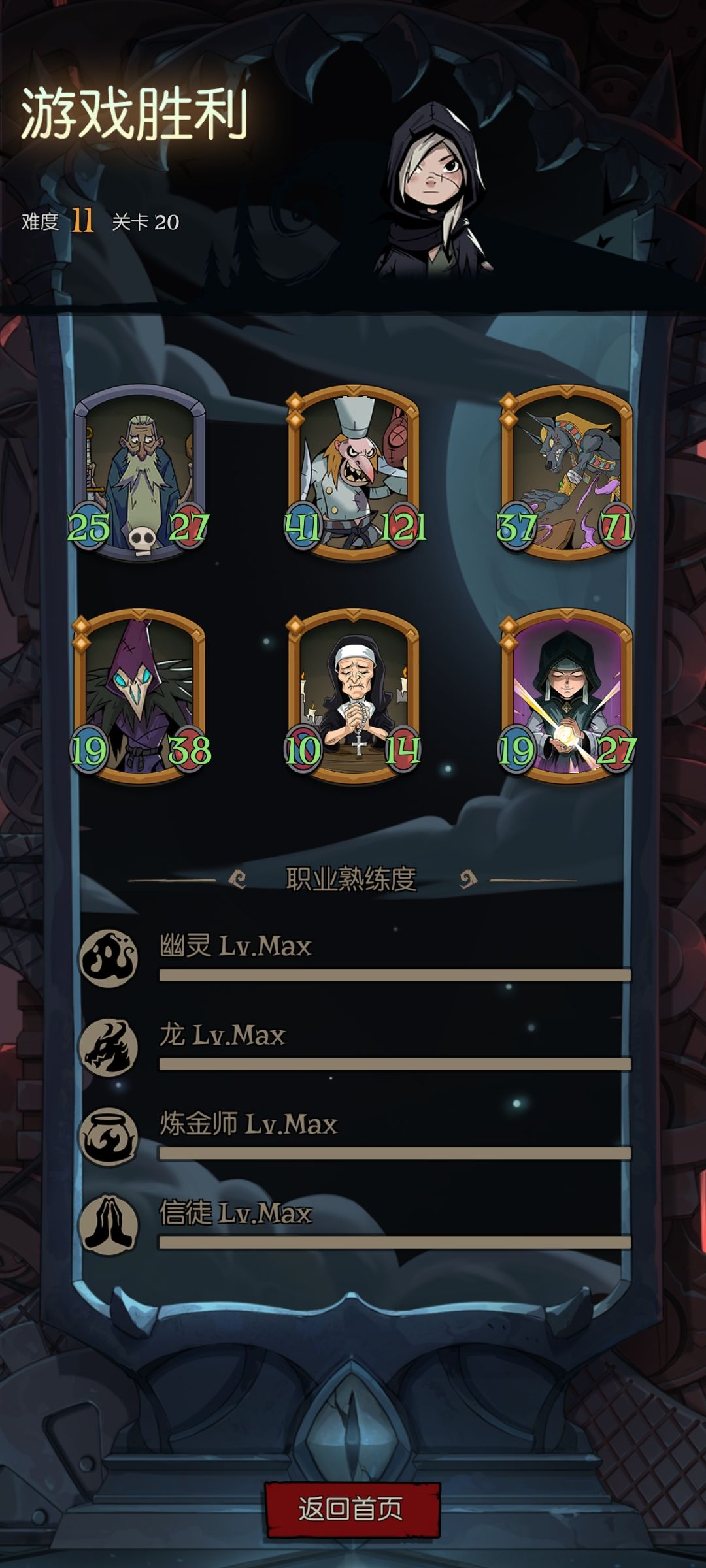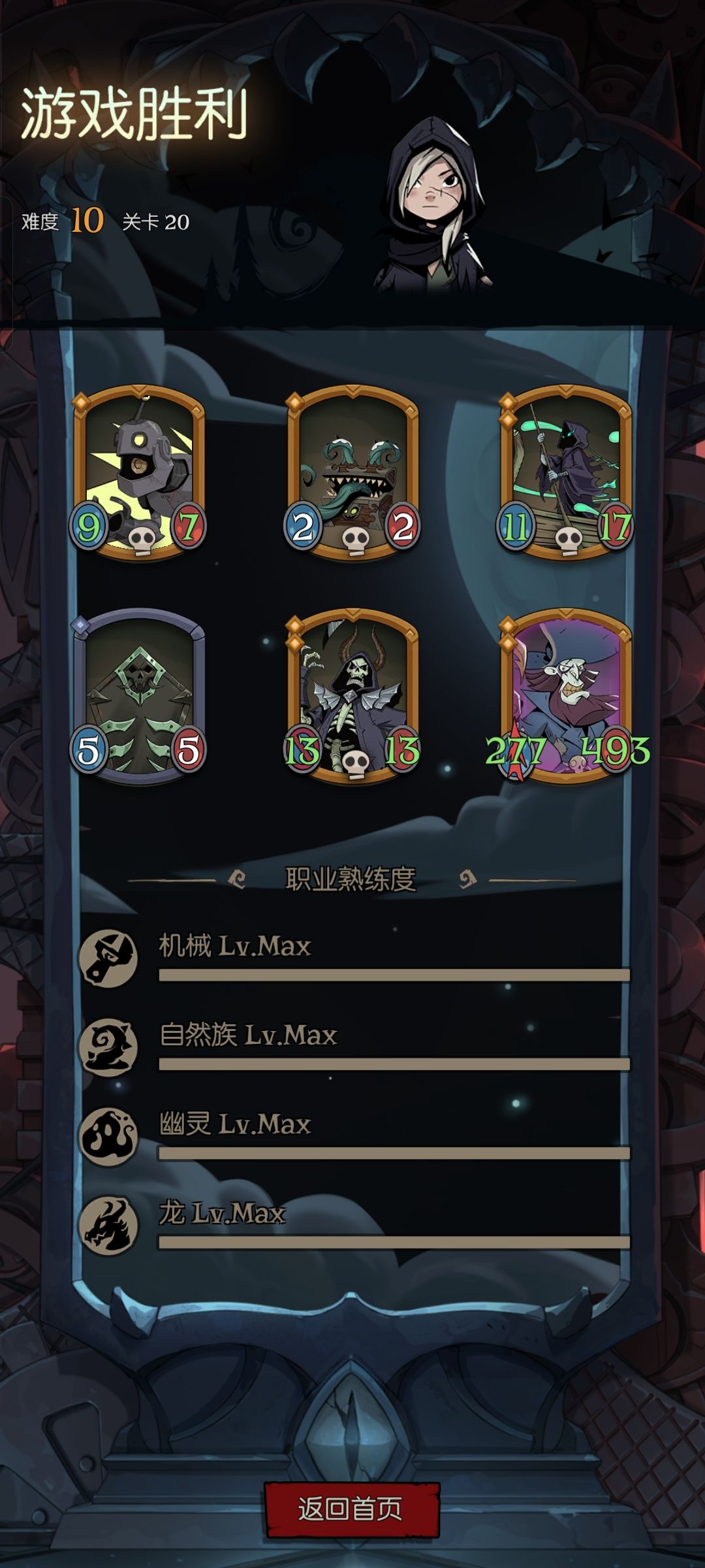 镜中的记忆的终极挑战成就,游戏里的描述是“满血通关难度10”。我以为是最终boss战一滴血都不能扣的意思(告诉我我不是一个人) 于是乎有了以下阵容(真·无伤通关队): 核心是叠加伤害遗言,然后带一张先手放遗言的装备 (兴冲冲满血秒完怪发现成就没完成,哭死)