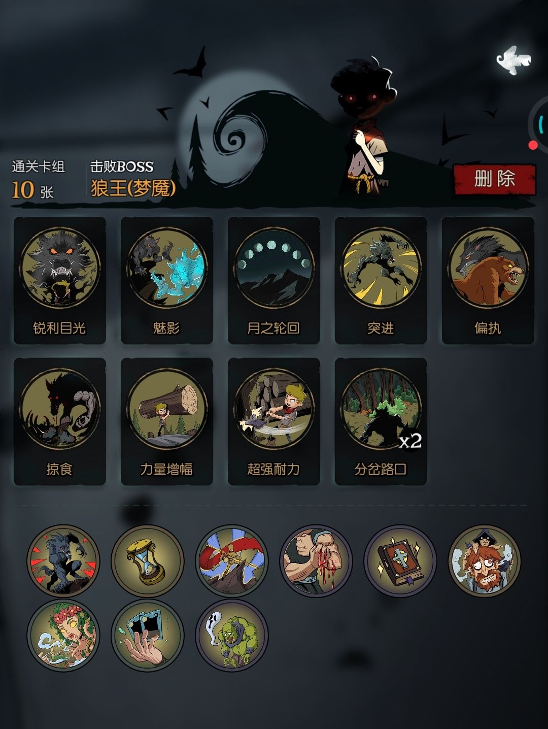 先声明一下,本人第一次写帖子有点紧张,如果有错误请各位一定要指出 今天是入坑月圆之夜第四天,今天和昨天都用契约师通关了五乐章梦魇。卡组如图 根据我用审判流打噩梦的经验来看,18张左右的卡池即能保证高爆发,又能保证不卡手。所以两次梦魇也选择了18张。下面分享一下为何选取这18张左右的牌来组成卡组。 一.输出方面 审判流的输出基本全靠死神降临 。死神降临做为一个消耗一点生命值的咒术卡能打出10*n点穿