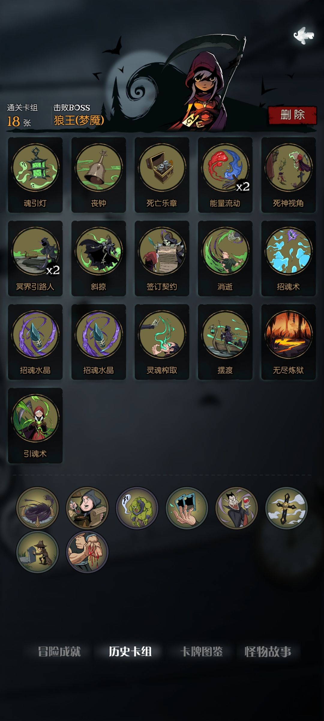如图,4卡狼王,比较简单稳定的还是。 祝福:必备, 同步音律。 备选:神奇雕像或双手施法(为了多洗招魂水晶,没有不影响),暗影之泉(有这个打年兽好打一点,那个吸取血量上限的。) 武器大师虽然有,但是我没用,一样可过 注意:鹿之轻盈这种开局多抽一张的,一定不能要。 狼王刷开局祝福,只要没有那种吸血量上限回合开始叠毒,或者回合结束造成20%伤害还有塞恶作剧的就行,很好刷。 打法:可能有点复杂,我尽量说