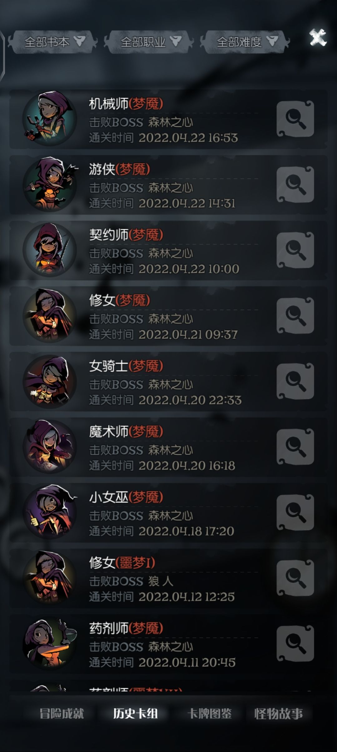 之前打了全成就就退游了,这几天又下载回来,看到多了几个成就和新难度,就试了试,成就没啥难度,各角色的梦魇难度还是很有意思的,下面就放一下我打梦魇用的牌,都是些比较轻松过的牌组。可供参考 注:只是自己随便玩玩的,不要太纠结更好的牌组 1.骑士就是正常的装备流 森灵buff:每回合破坏装备,无装备破坏时扣除30点血 2.游侠:闪避游侠,因为后面森灵的buff比较恶心。前期看运气。三章左右开始无伤(森灵