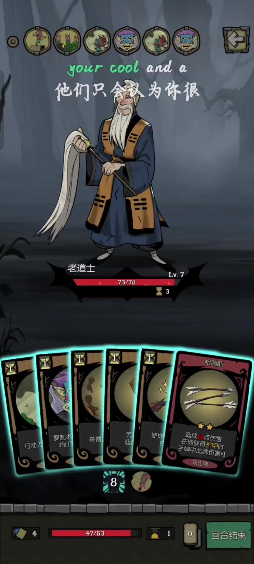 这里提供一种打法,下面是卡牌选取的推荐 灵魂出窍可以混回合有的话体验更好,投石器也是。 主要核心是名字很长的独门绝技,只要让别的手牌伤害增加,就可以把伤害加到他上面。 另外一个核心,粗制箭和贴身护甲,可以快速给名字很长的独门绝技叠伤害,一拳直接打爆boss 剩下的牌,多拿一些过牌,还有加行动力的,像悍勇,飞奔这种可以弄到很多行动力,多开几次贴身护甲来增加伤害而且还能增加生存能力 伤害有了通关还是非