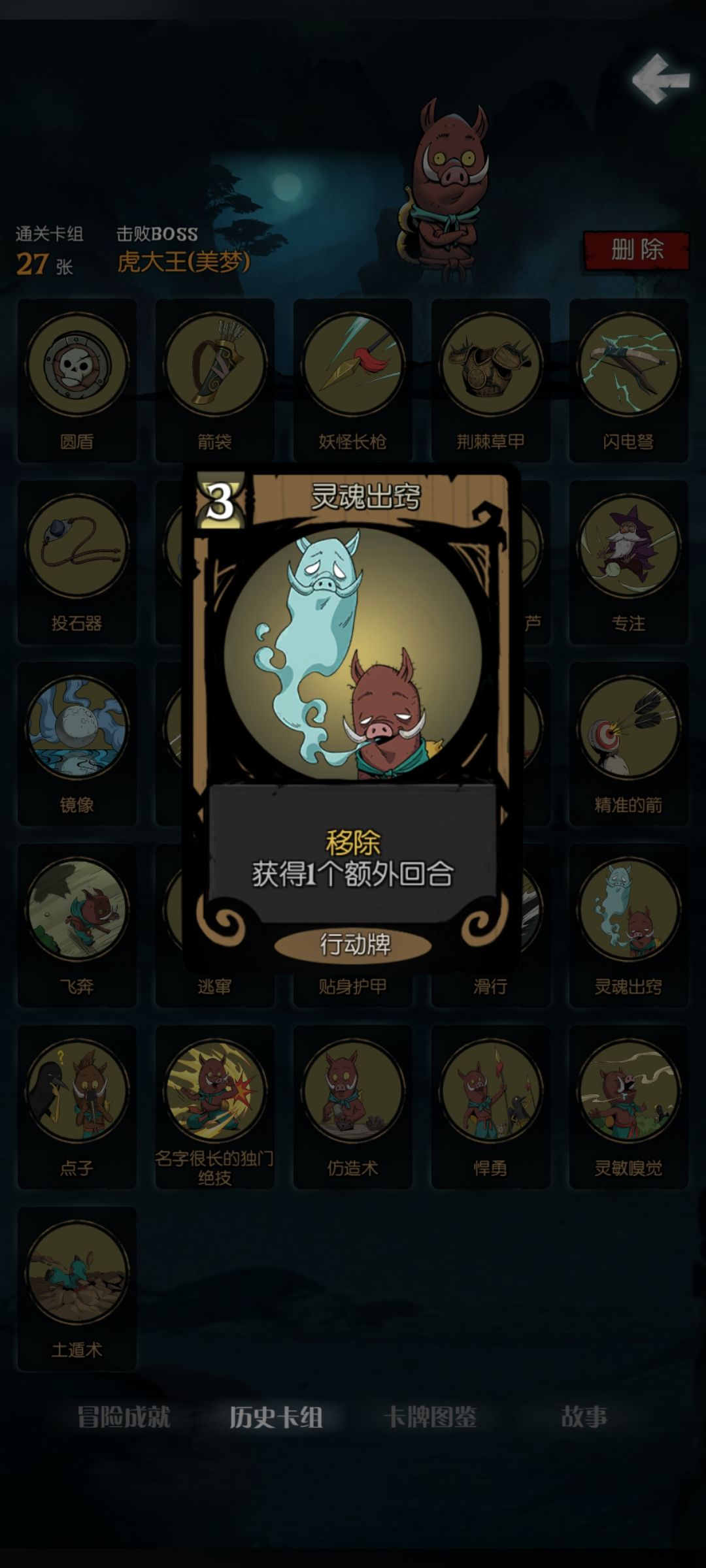 用投石器养猪突,再把行动力搞上去(泥浆浴开皮糙肉厚,飞奔,悍勇),拿一些过牌的行动牌,一出攻击牌就打掉,防止投石器养歪,然后靠高行动力和猪突的高伤害。(我最后打老虎三回合秒,还有七百的护甲,装神弄鬼也挺重要的,虎一回合就四张牌。当然如果有炸盾是最好了)