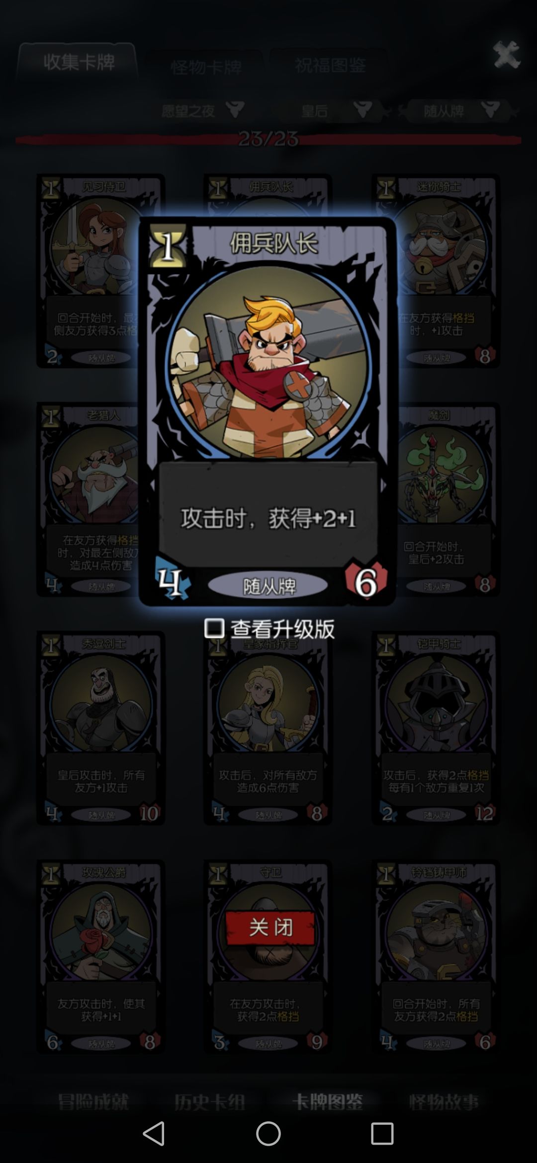 愿望之夜玩法核心:攻击力、身板(叠甲或血量)都要达标,其次一定要看怪物的祝福效果。 随从介绍 (指挥官已经改过,没时间换图) 开局前段会遇到的随从就这些,选择什么随从大致方向就已经决定要玩什么流派。 佣兵队长、老猎人、魔剑、巡逻兵、皇家指挥官这几个随从都能安稳度过前期。 其中佣兵、猎人、魔剑、巡逻兵大致上代表四种玩法。 连击流:通过给予随从攻击机会增加自身属性和护甲。 叠甲流:叠最厚的甲,挨最毒的