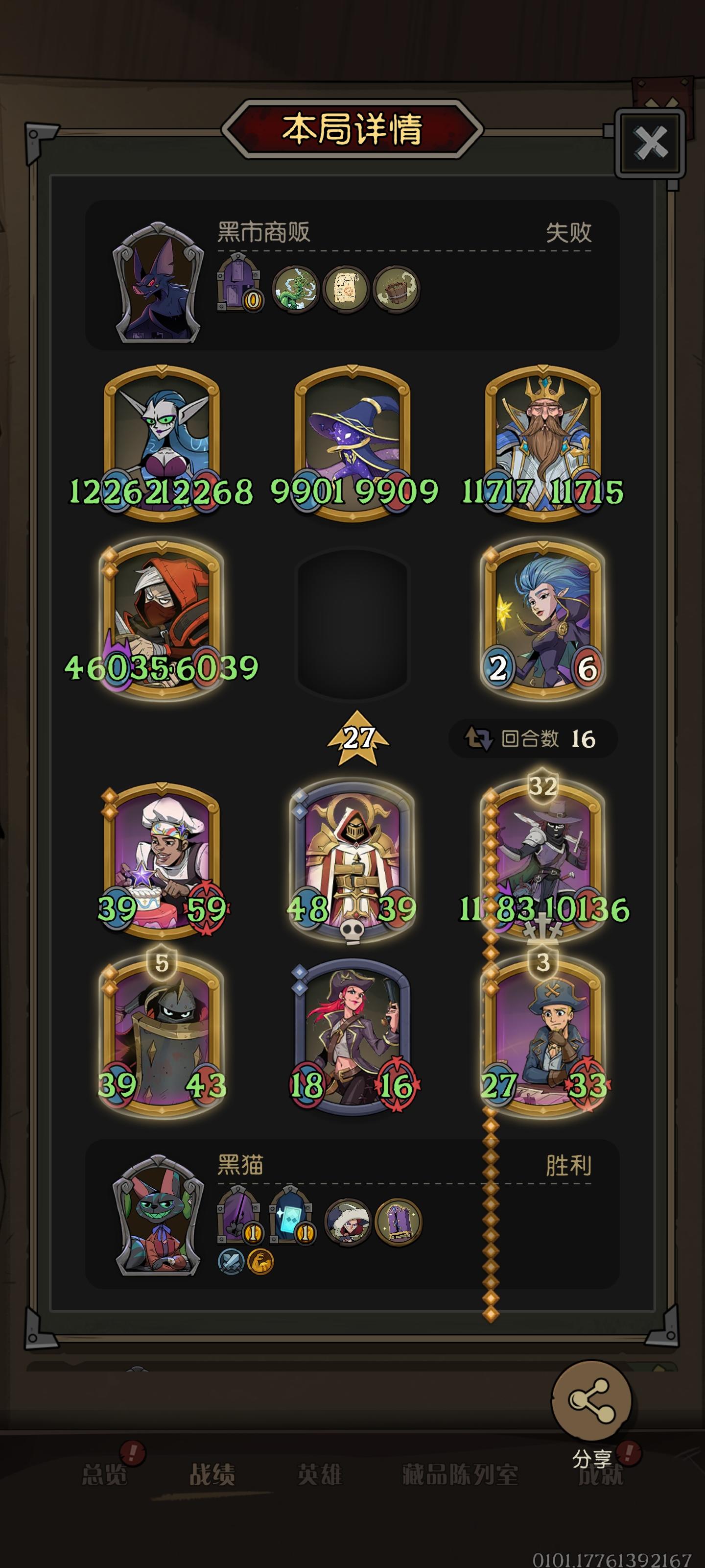 所需随从,神射乌兹+乌鱼+先手龙+套娃魔女飞艇。 能金就金,不金也行。 思路,用神射手清理对方身材低的小怪或者破盾,这其中,乌鱼可用天女散花装备代替,先手龙也可以用宝珠代替。 然后,套娃魔女出手清场,也可以用鱼人代替。 此场景适用于大身材套娃和电话号码龙。 图中配置,对方套的是万血30+盾神装王子(也不知道手酸不酸...),我方还是后手,不过运气不错,神射乌兹金了,乌鱼有不少的法伤,魔女双盾有身材