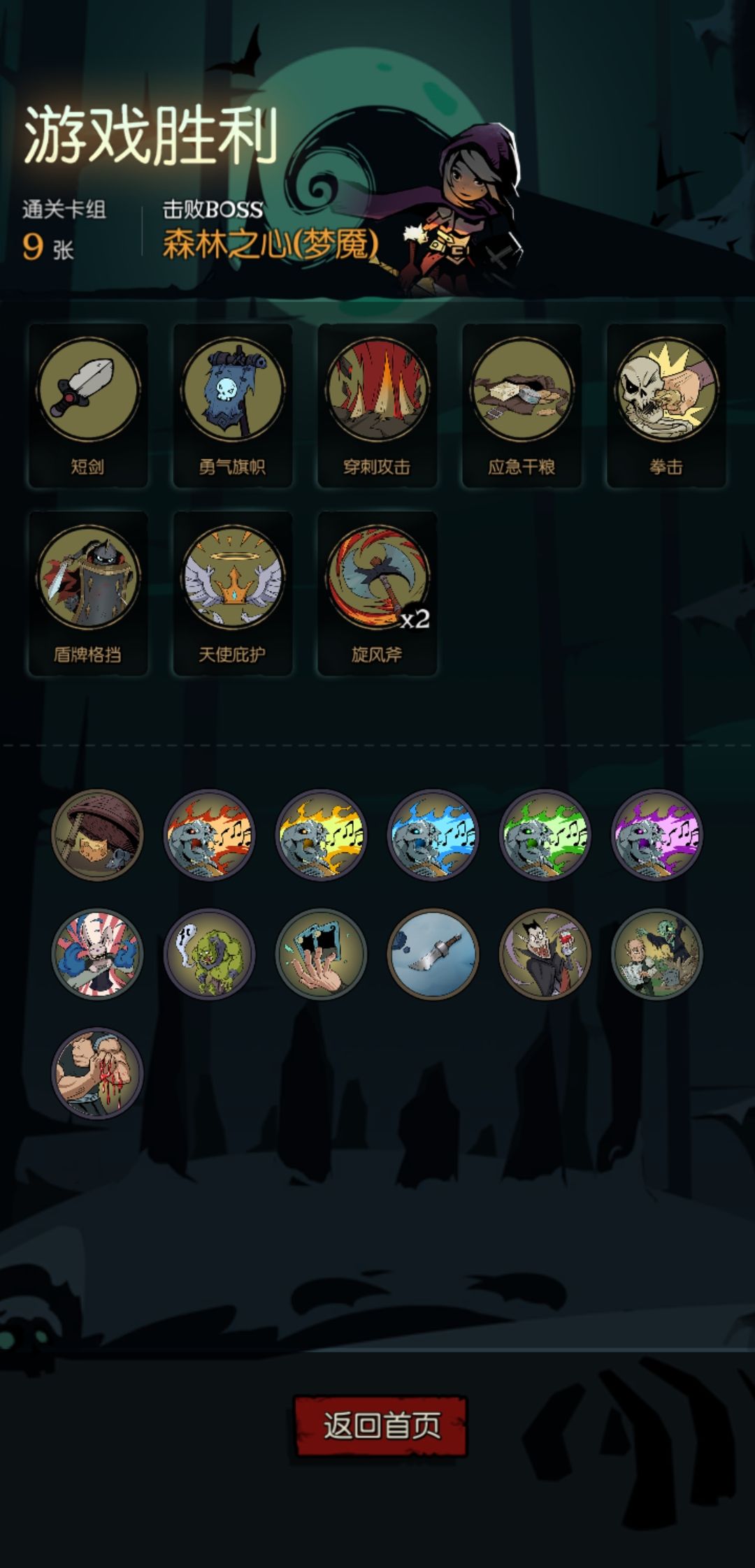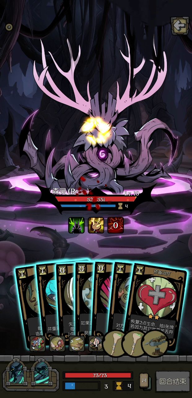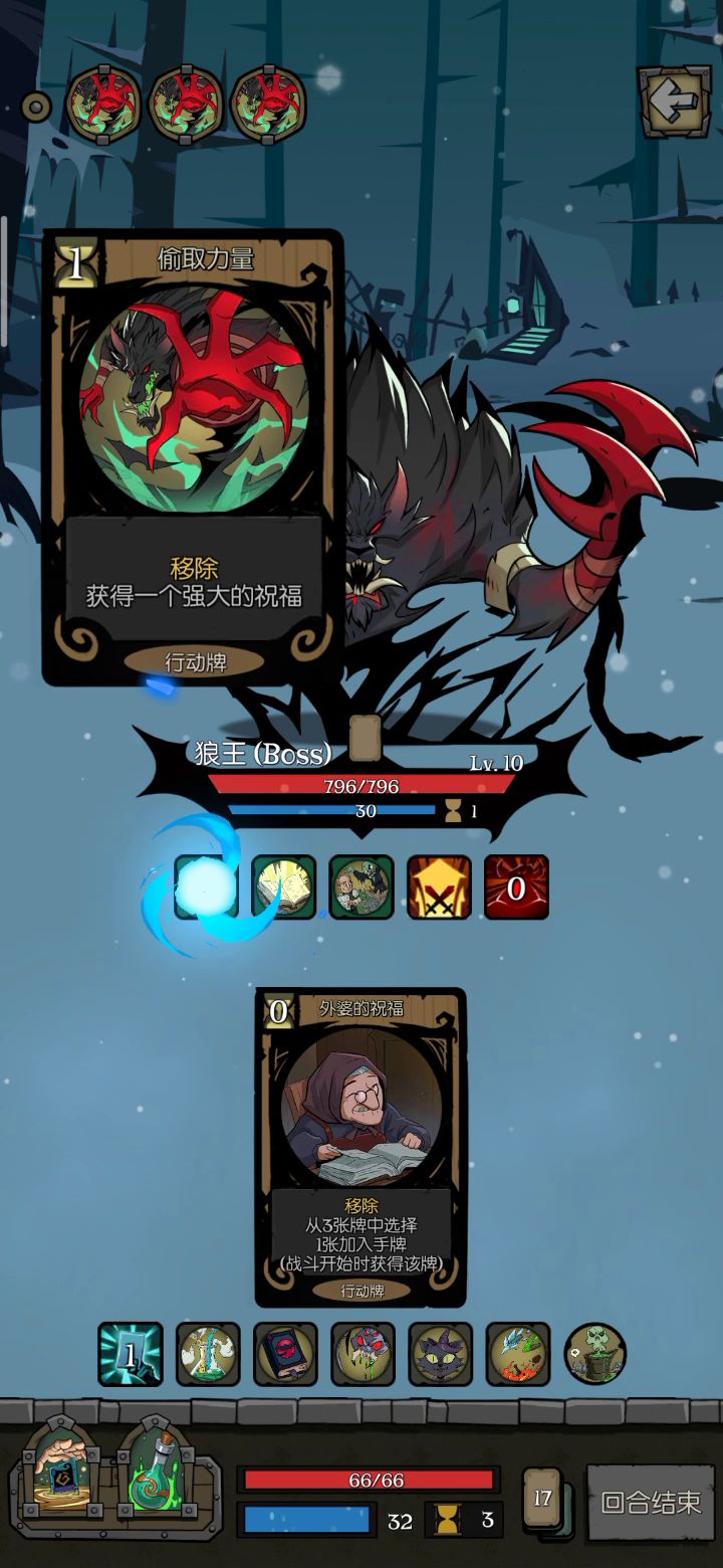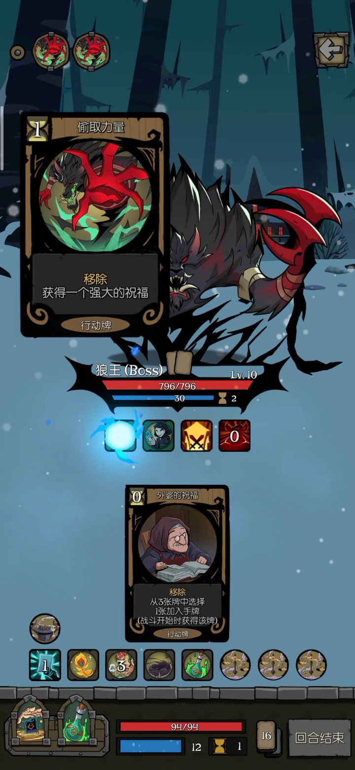 前期太难顶了,第一章开了卡包出了旋风斧、天使庇护、勇敢的心,第二章出了盾牌格挡和应急干粮,多多益善拿了旋风斧才顶过前期,第三章最后103块,差2块钱才能删掉天使庇护。总得来说这个套路很好成型,第一回合拿到其中一个核心就可以开始删牌了,系统会顺着你的想法发牌的。