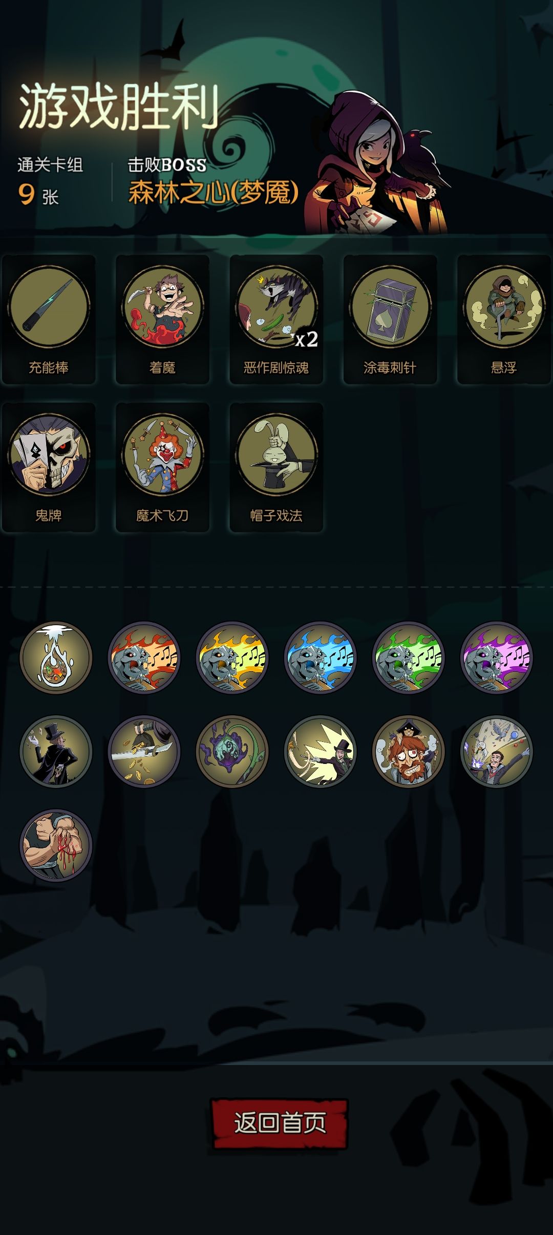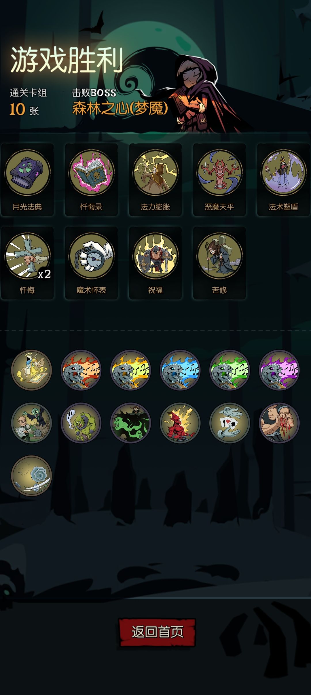 关键牌就两张,狼爪护符和终极形态,看到必难,开局必须拿隐者秘药,到第二层尽可能多拿终极形态和狼爪护符,这种打法为大卡组打法,全局宝箱看到就拿,不用到酒馆删牌,一张都不要删,牌越多越好,优先拿装备槽,至少两个,其次是行动力,有复制卡牌的祝福就复制狼爪护符,只要拿到两个关键牌直通也可以到下面这个链接看看b站大佬的解说 【月圆之夜攻略解说视频:狼人变化流梦魇五乐章(适用于噩梦七)-哔哩哔哩】 https