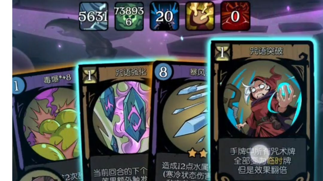 思路核心祝福:开局祝福一定1卡牌图册(➖初始4法力,获得一张牌加2初始法力),玩起来最顺。2龙卷风 卡牌核心,法力沉淀(咒术造成伤害获得同等法力)飓风 装备核心,魔力法杖,飓风法杖 存钱不是体系内牌不拿,没用的牌在忘忧酒馆删除,快去体验一下吧流口水[表情_流口水]