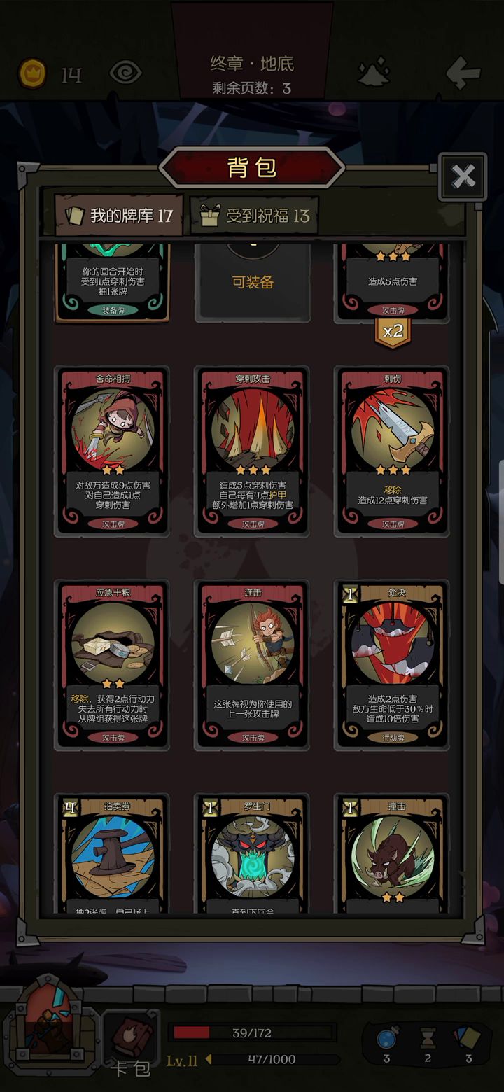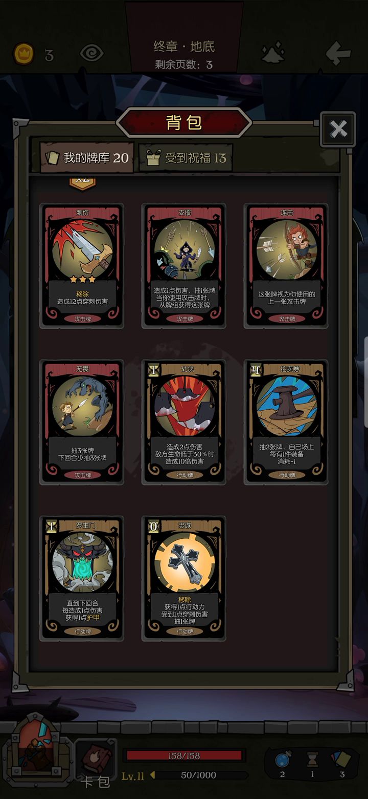 7卡、3行动、4抽卡,尽量压缩了,6卡的话少一个紧张感输出不够。这个组合难度在于过渡,小怪远比boss困难