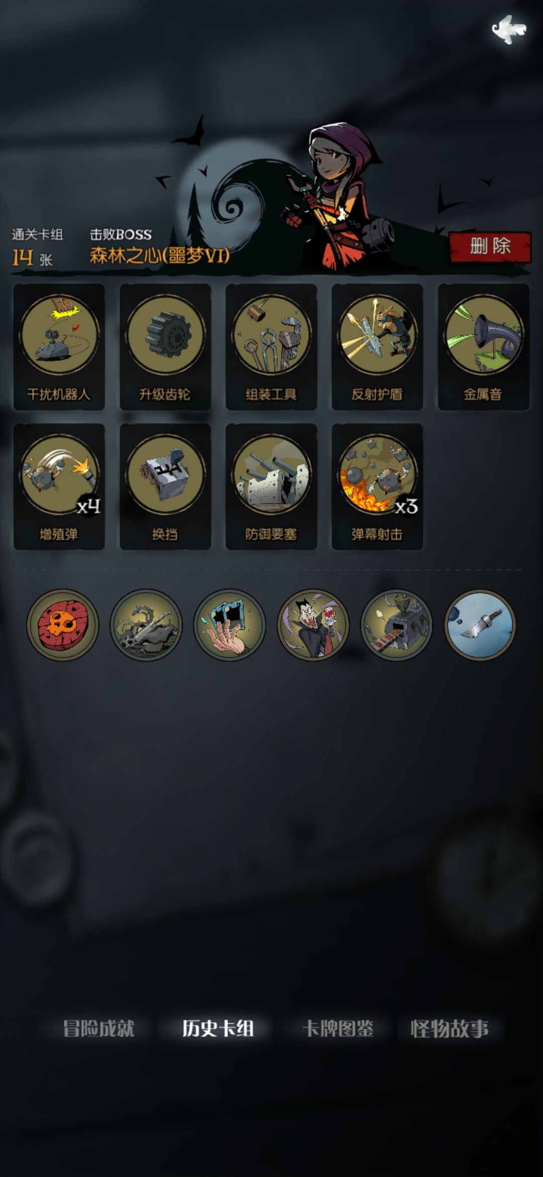 核心祝福:流星镖,使用0费牌后获得1点行动力 核心装备:回收装置,被附着后,抽1张牌 最好能遇到升级基础行动牌的洞穴奇遇,选择升级修理,0费给一张附着随从。没有的话就得找铁匠一张一张升级。 噩梦Ⅶ前期容易暴毙,尽量选能强化随从的卡,要谨慎拿牌快速删牌,除了齿轮驱动,其他非必要牌不要买,免费过牌可以拿。钱留着删没用卡,一切事件和升级奖励,优先删卡。 成型之后就是简单的快乐了。随便一个随从都可以当大哥