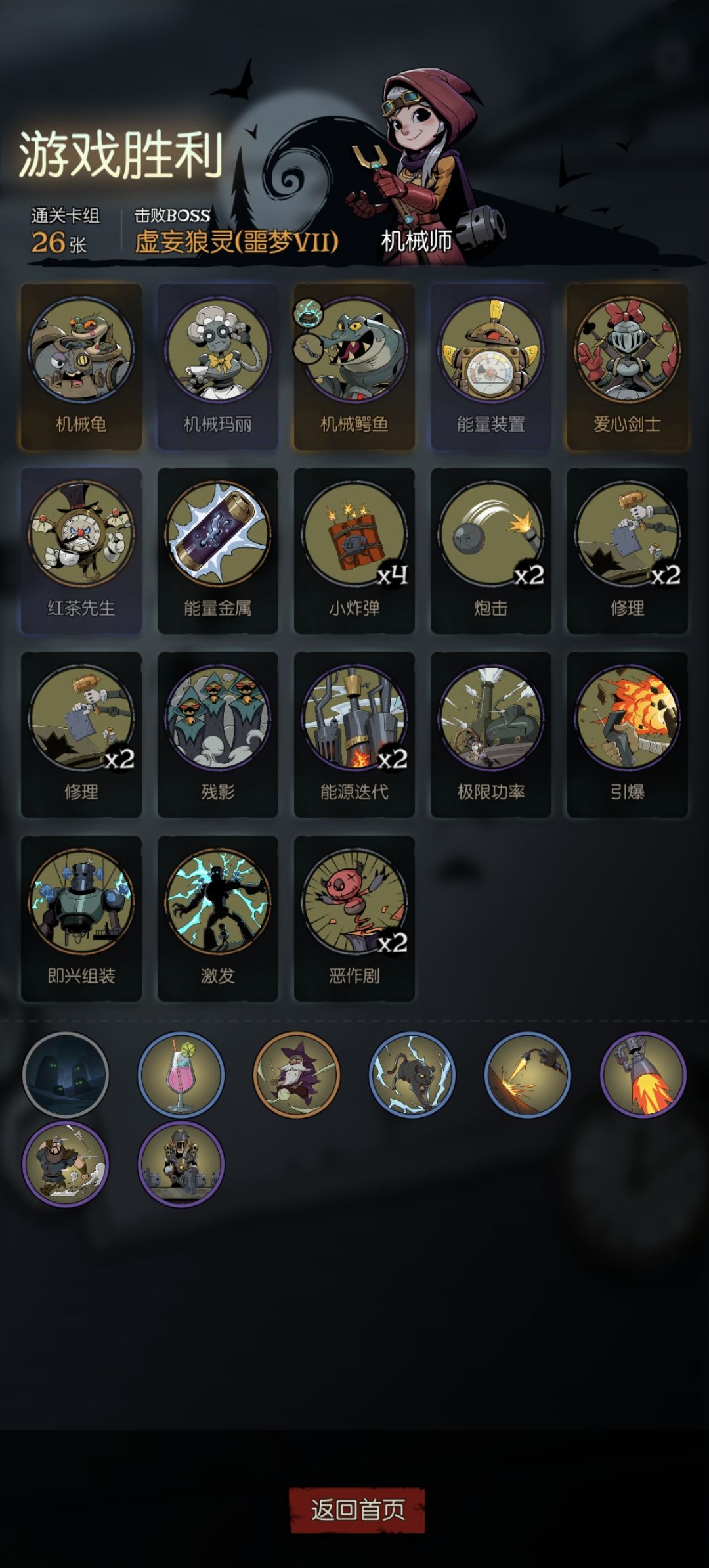 开局选机械龟,没有就重新开,遇到高扣血就用乌龟免费的牌挡,然后发条和机械缝合怪两个配合,魔术师和熟练机械师随意一个都可以配。快速升级修理卡,然后把炸弹和炮击各删2张,其他卡片以过牌和行动力为主