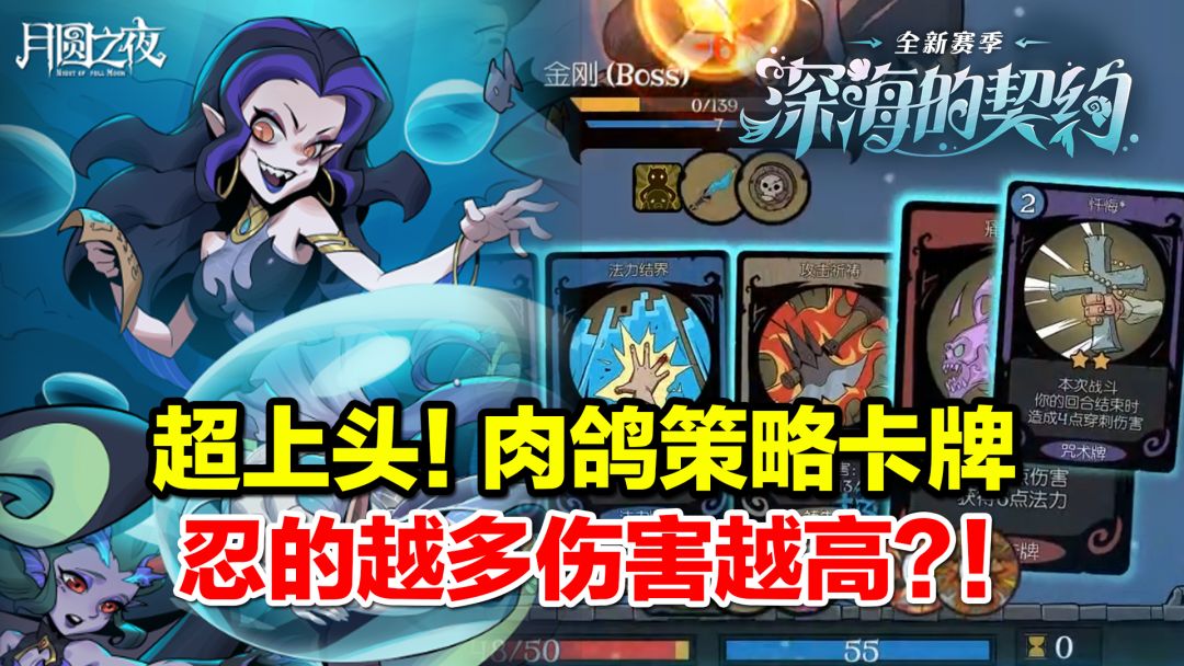 此牌组成型难度不高,可同时完成多项成就,并且没有任何强度上限。 1.玩法实操视频: 1:20到4:20秒为可跳过的垃圾时间 2.刚需条件: 天赋 装备 升级过的基本行动牌 应该也不算难吧 3.玩法原理解释: 核心点——利用愿望之夜的不同牌库逻辑。 月圆之夜 正常手牌被使用后进入弃牌堆,下回合开始时再重新洗回牌库,所以牌库被抽空后就会无法抽牌(玩过过牌流游侠,还有精简法师的应该很清楚) 愿望之夜 则