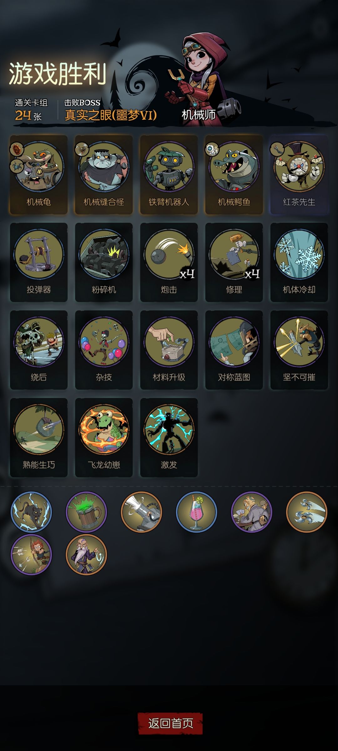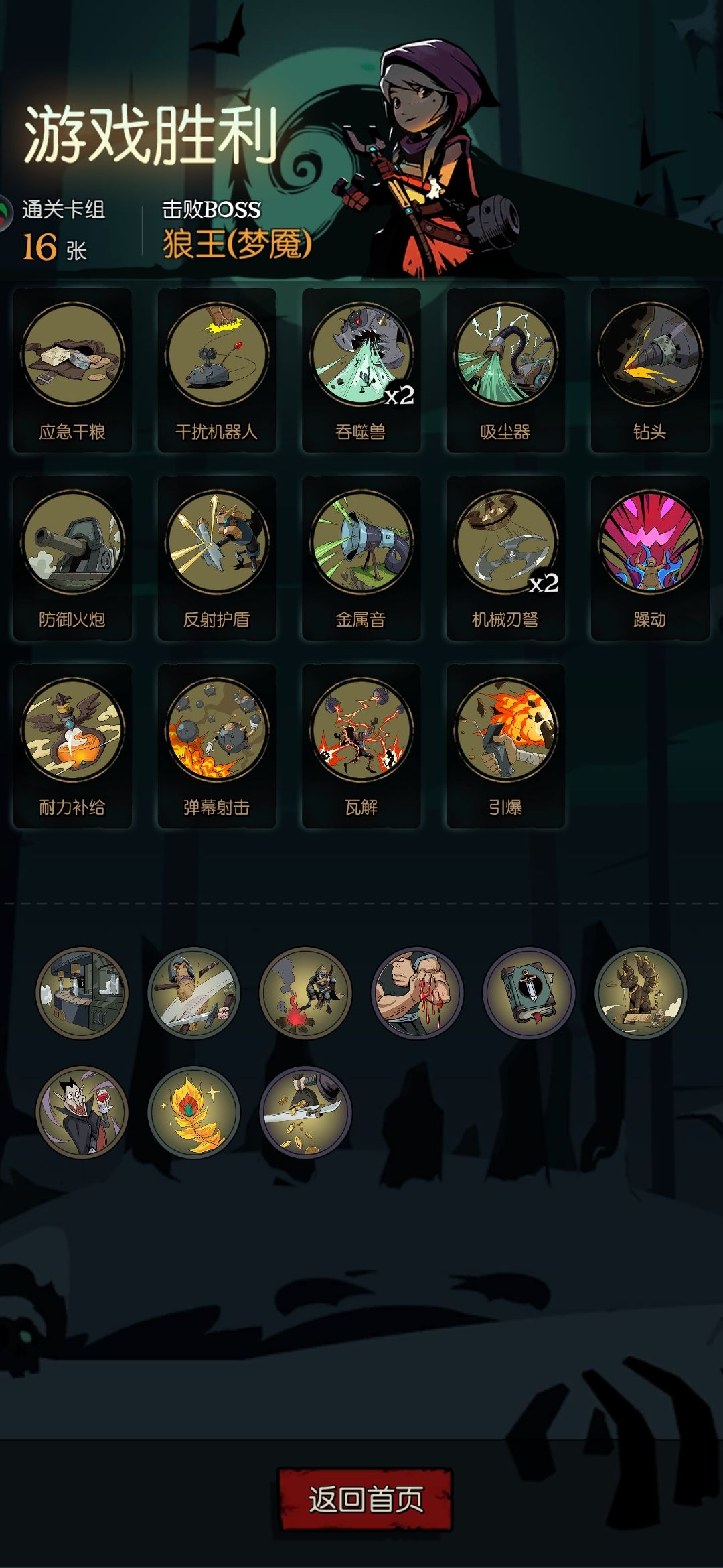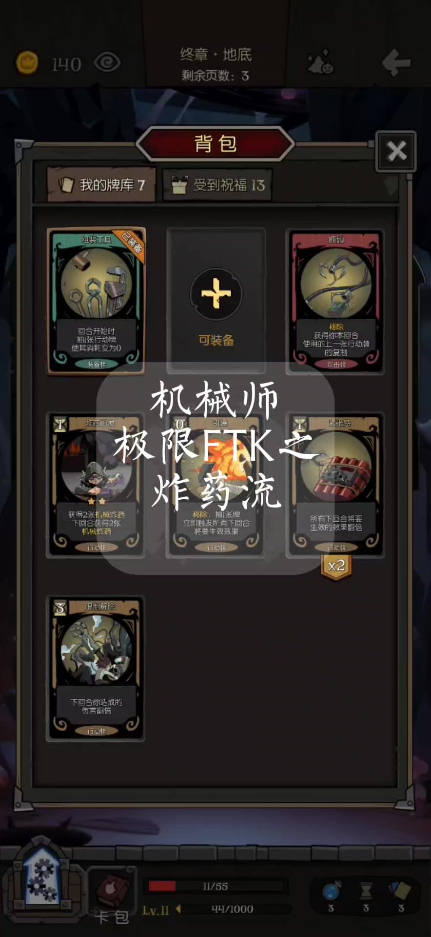 愿望之夜不存在刷干净牌组的说法。 永动机玩法,折磨boss也折磨自己,怪物一回合都动不了,无限刷。 天赋要求:流星镖+苔藓果汁(有开胃特饮和敏捷根稳定) 卡牌要求:满级修理(有杂技更稳定) 装备要求:回收装置 单位要求:铁臂机器人 PS:输出够用,就是刷着好玩