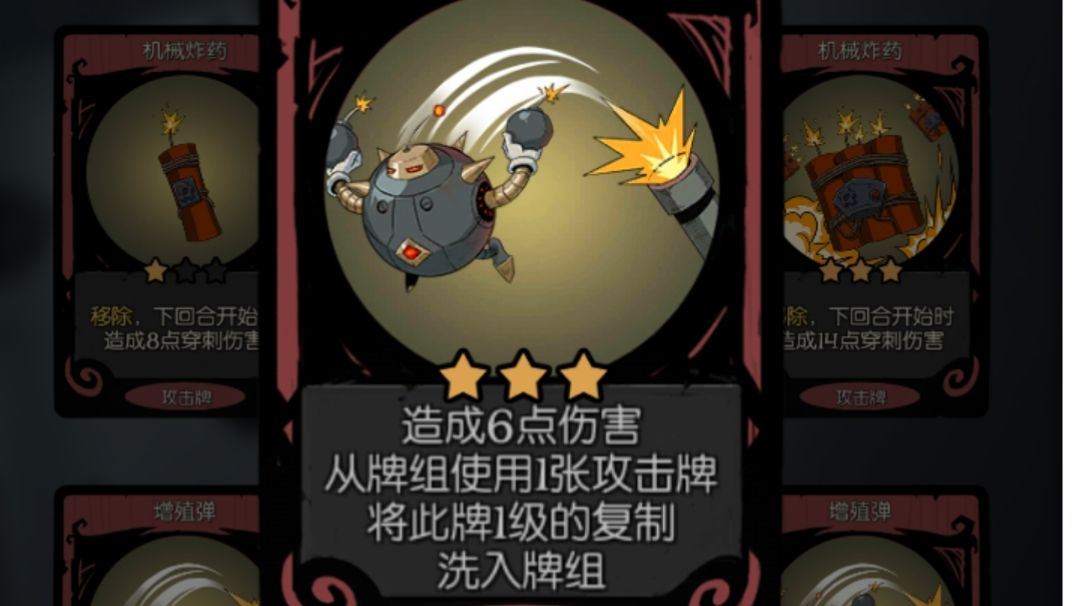 极简增殖弹流亲测成功率很高。主要打法就是靠增殖弹洗入增殖弹一直增殖即可。在牌组最初的增殖弹一定要是三星的不然没什么效果。弹幕射击,升级改造,终极改造都是为了加快增殖弹增殖速度一至两张即可不需要带太多。 牌组需要两回合时间启动。牌组要求:攻击卡只拿增殖弹其他的全部删掉。天赋注意点两点加行动力的够用即可。由于本人比较享受无限增殖不用动手的快乐所以没带加易伤的卡如果想输出最大化可以带张弱点暴露之类的易伤牌。至于机械师场外技能本人全点加血量增加容错了。