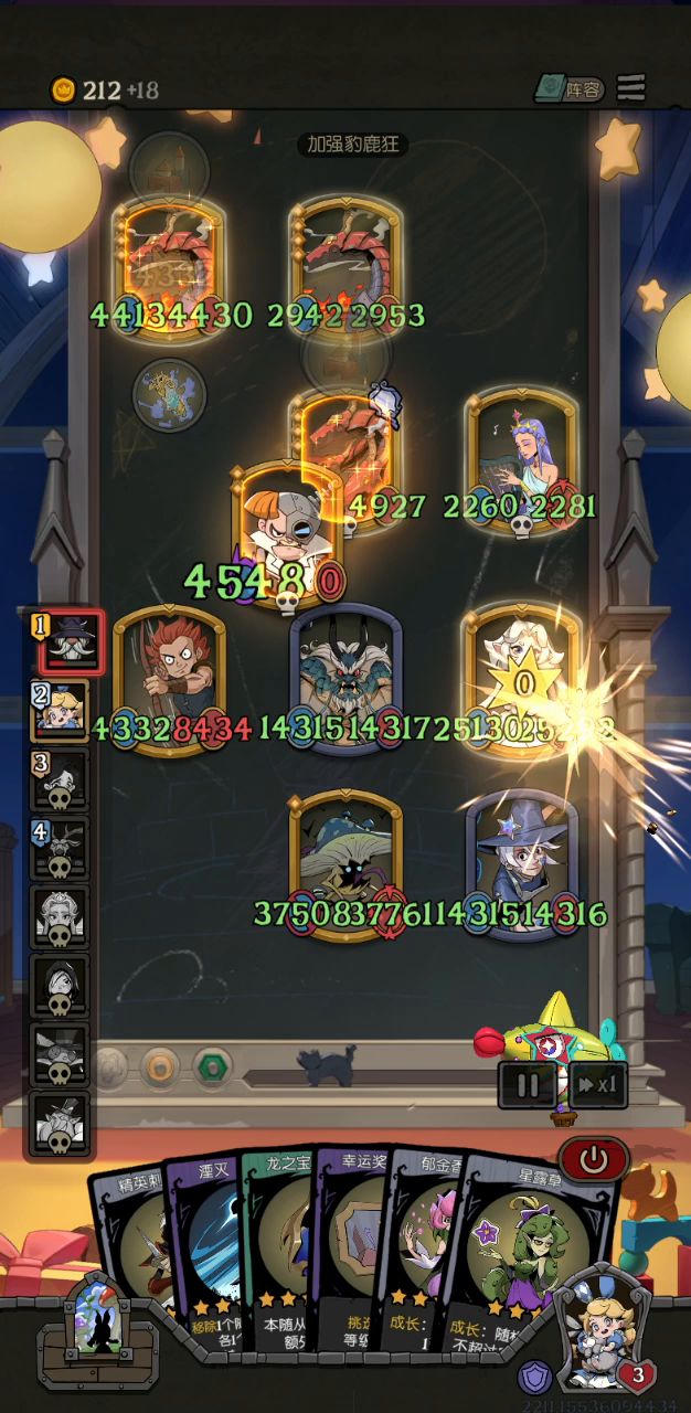 前期不断重开,直到一开始就拿到我们核心卡魔法树苗。 前两关魔法树苗可以单刷,第二关没有魔法树苗的话可以存钱等第三关,争取在第三关的时候可以拿到两张魔法树苗。若没有可以拿入场加属性的卡给树苗加属性,前期不用着急升本,先拿到可以三连的魔法树苗之后再升级。 二本之后用入场卡给树苗撑属性,见到二本卡科研装置能拿就拿,这个是我们升本的主要经验来源,在确保打的过的情况下速升三本。可以拿变色龙(通用卡),魔法树