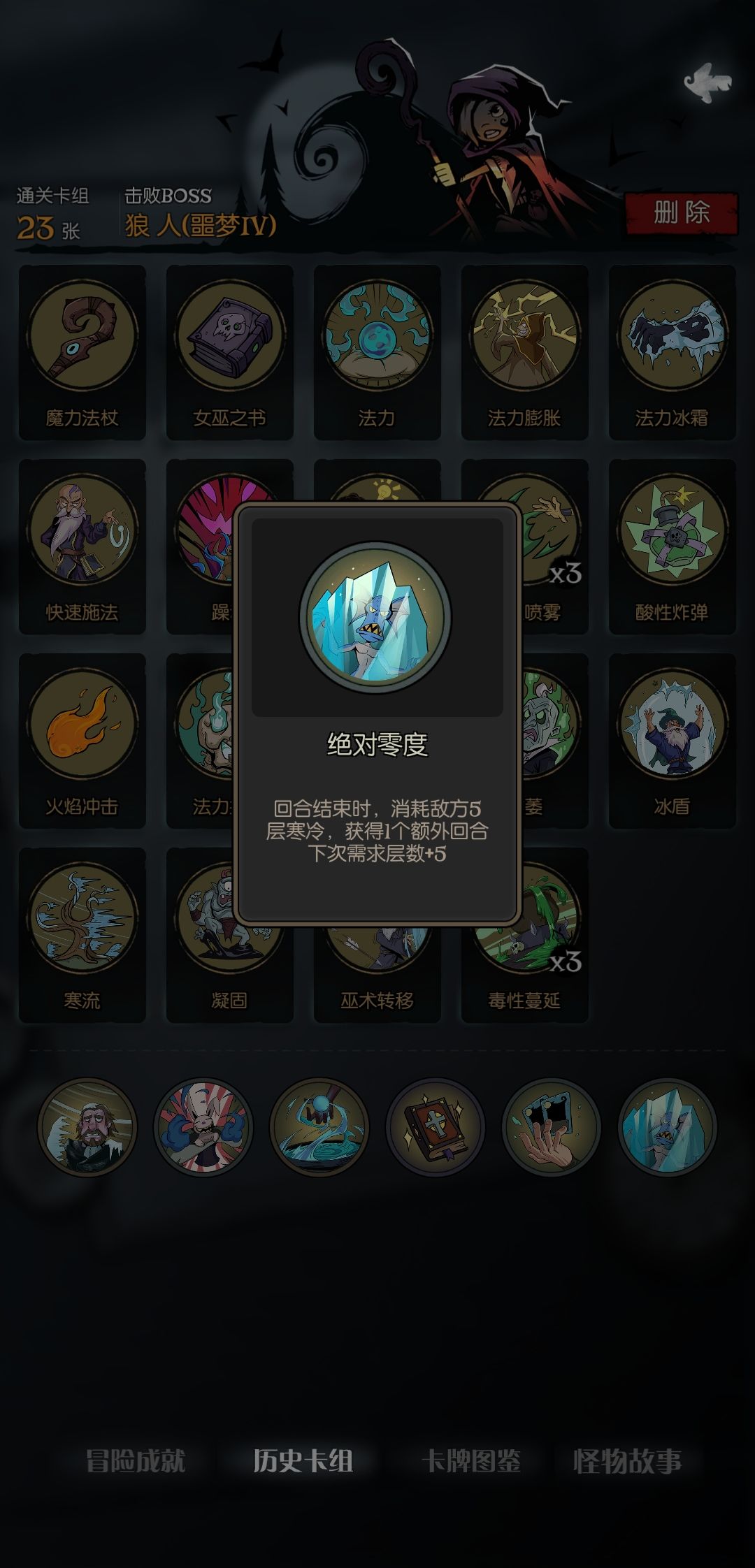 小女巫刷羸弱,真的是需要绝对零度这个祝福,可惜太难刷。 (之前看的攻略是:第二回合没遇到就重开。 结果ta可能是欧皇,而我非酋,三次都是第三回合遇到。 第一次是一次性神父遇到,第二次才是正经叠毒,第三次是一次性外婆。) 【思路:点毒+枯萎翻倍+毒性蔓延刷寒冷+绝对零度刷回合,要精简卡牌】 【增益】: 1.回蓝: a.飓风法杖+伤害卡:前期回蓝专业; b.回蓝抽卡法力牌:回蓝最好都以抽卡牌为主,其他