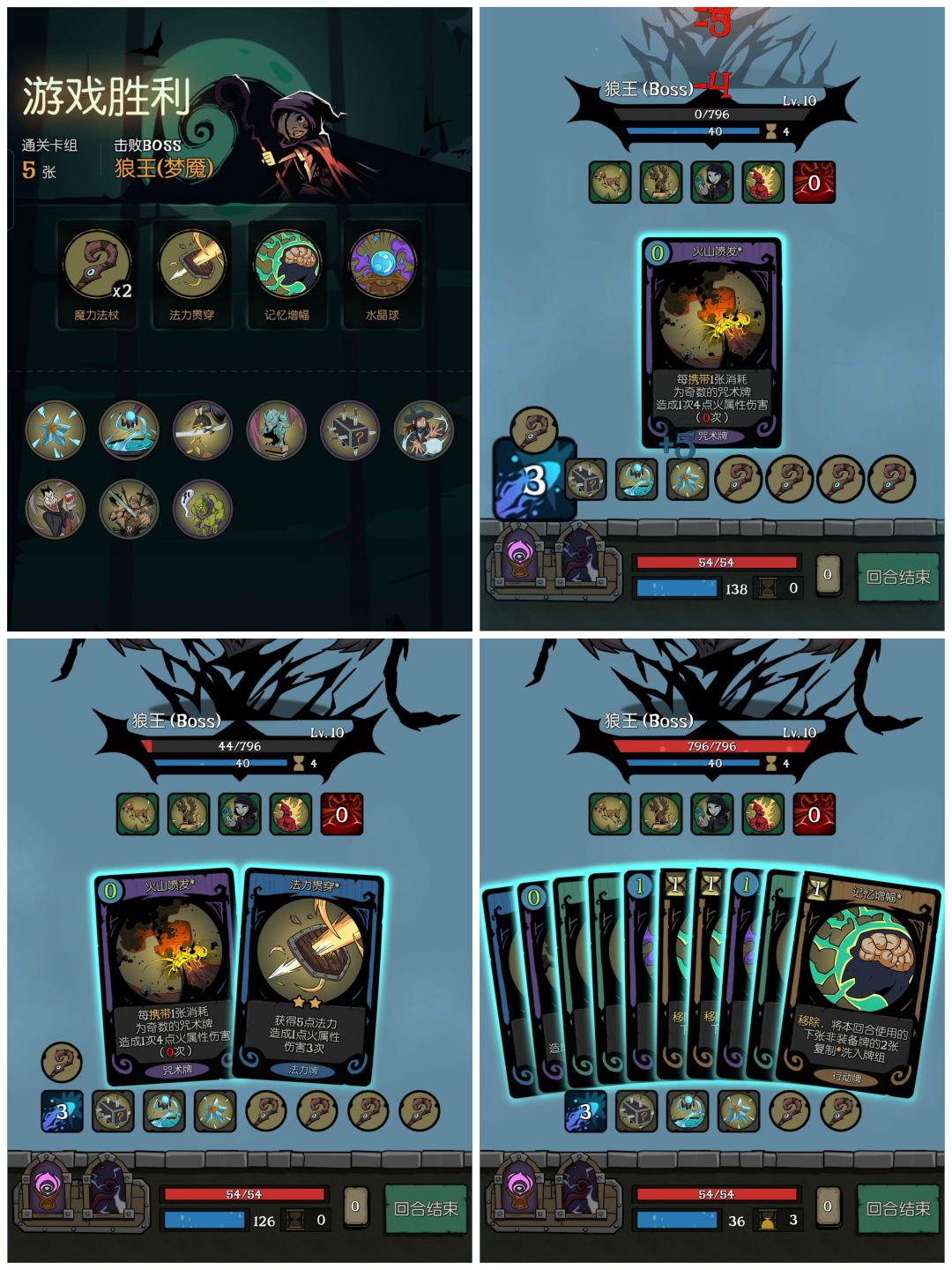 注意手顺,第四图最后3张是用技能二抽出来的。 法力贯穿不依靠随机卡牌就能秒,比法力冰霜(需要随机到邪恶水晶)强一些。 如果前面水晶球多抽一次记忆,由于行动力不够相当于浪费一个水晶球,导致最后缺一张法力贯穿。这个情况如果随机到合适的牌也可以。