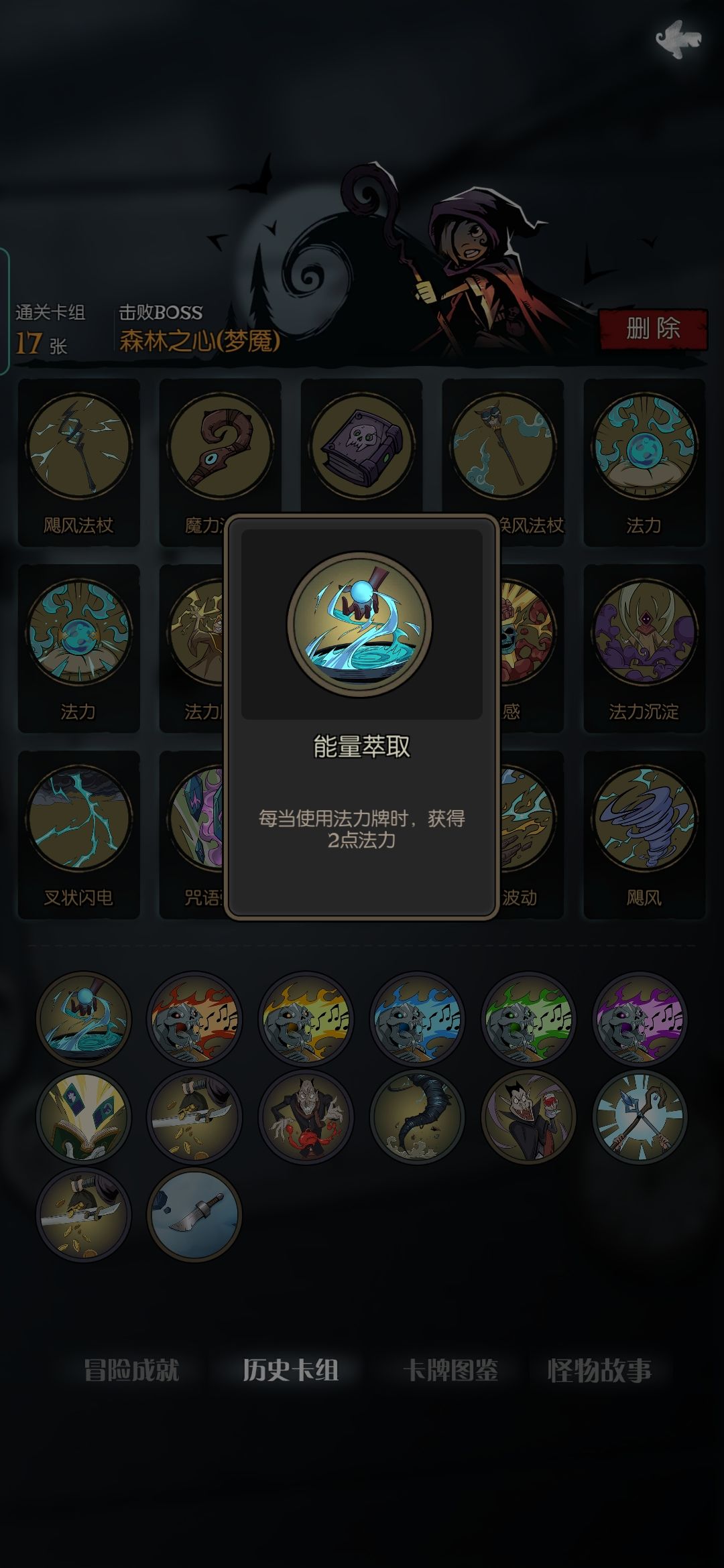 召唤卡牌,龙卷风,飓风法杖,飓风,保证了使用飓风牌后,消耗掉了n点能量,打了n点伤害,然后会回1.5n的能量,使得能量越来越多,这四个是最核心最核心的,其余的可以根据遇到的卡牌决定怎么打。
