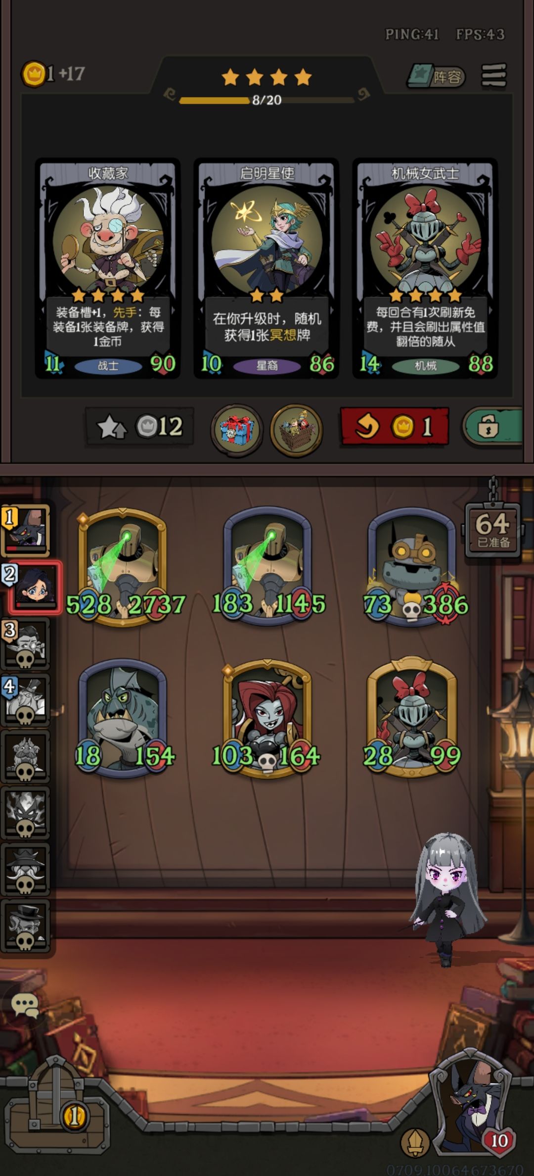 #月圆之夜镜中对决 这套打法不需要太好的运气,也不需要动脑子,但是有几个硬性要求,首先必须是黑市商人,然后本局必须有机械族。 思路很简单,开局拿个机械,然后用技能一直刷机械就是了。升本升到四就行了,具体想怎么升都由你自己随机应变,我打到游戏结束都是四星。有加商店属性的卡就买,法术也这么选。然后珍宝首选折扇(一般你的场上摆满机械族应该会有的)如果没有就拿成长怀表然后扔给那个三星的机械成长的。高级珍