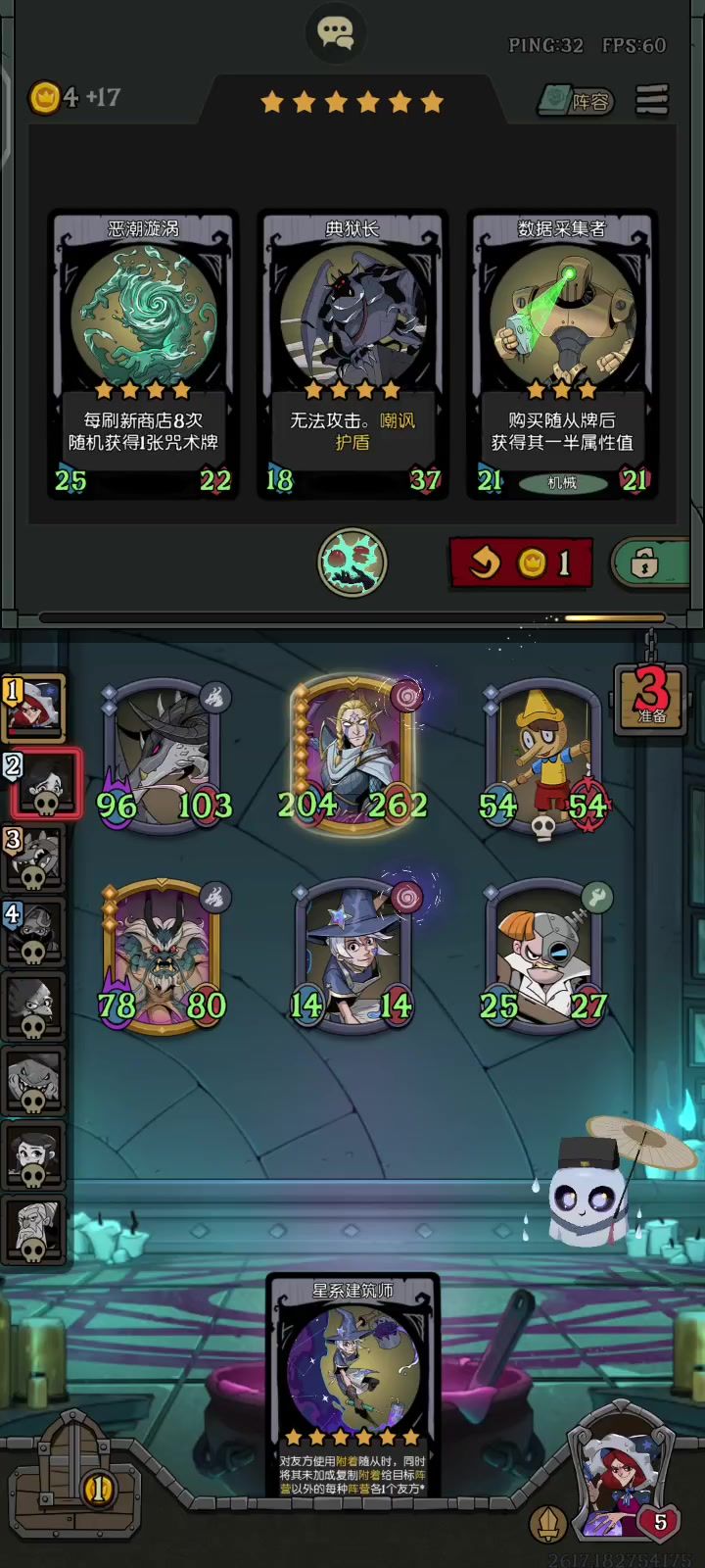 #月圆之夜镜中对决 这套打法不需要太好的运气,也不需要动脑子,但是有几个硬性要求,首先必须是黑市商人,然后本局必须有机械族。 思路很简单,开局拿个机械,然后用技能一直刷机械就是了。升本升到四就行了,具体想怎么升都由你自己随机应变,我打到游戏结束都是四星。有加商店属性的卡就买,法术也这么选。然后珍宝首选折扇(一般你的场上摆满机械族应该会有的)如果没有就拿成长怀表然后扔给那个三星的机械成长的。高级珍