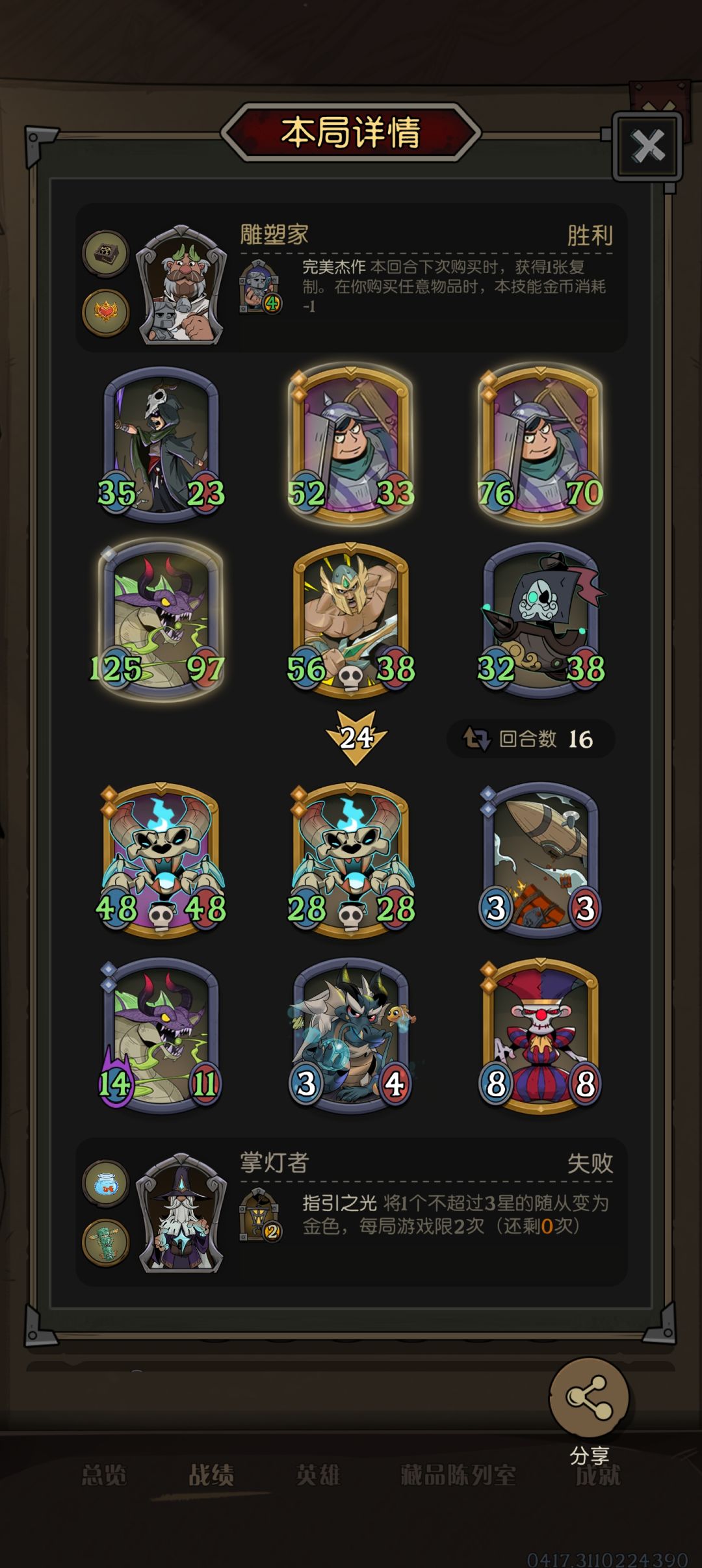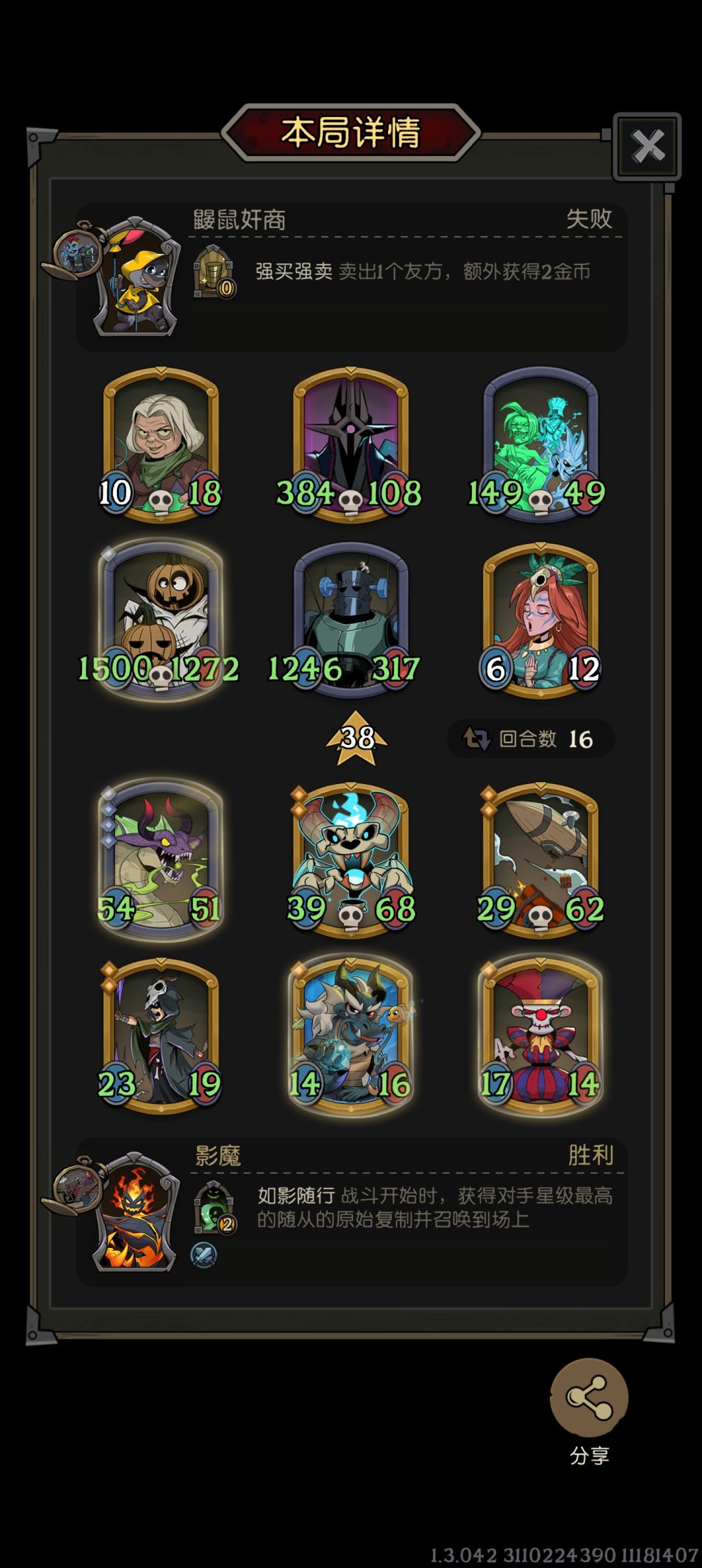 这一把海盗船装备是长弓,二疯狂,加上石中剑一共打四下。老实说我这个阵容已经3个回合没变了,原本以为只能烂分结果还真就让我吃了。这把感受就是很多随从和装备的搭配能起到一加一远大于二的效果,最后哪怕对手更强也能四两拨千斤,我觉得月圆之夜区别于其他自走棋的最大魅力一是装备,二是多种族联动,三是倒转门槛低。