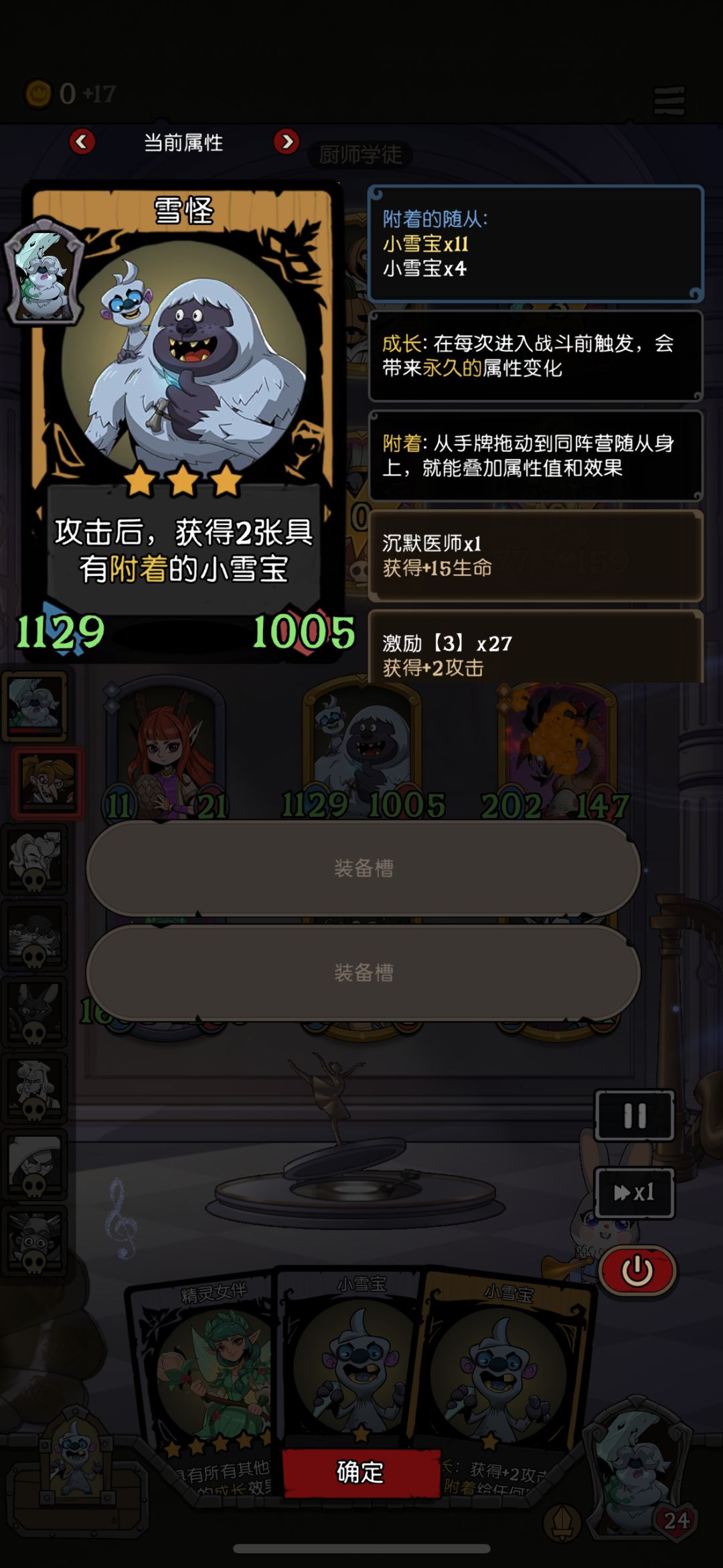 金刚,没得说,不到决赛就是神,越早越强 古宝幽灵,非常垃圾,来的早可养,但是养的非常慢,养好了也完全没有其他卡配合,还有一个怕小孩的大缺点,唯一的强度就是小孩养的人少,但是古宝幽灵养的早,勇敢小孩直接秒,驯鹿可用,别的角色完全养了血亏,纯粹的垃圾 白骨龙灵,非常的强,虽然说基础只是类似于古宝幽灵的双倍身材,但是白骨龙灵可以搭配老鼠,小丑,飞艇,饼干等等,非常的强力,身材翻倍的次数根据自身拥有的随从