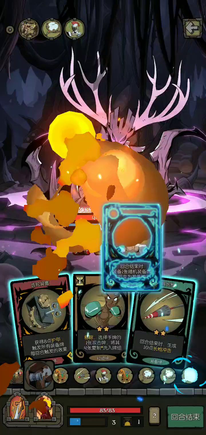 直接一回合带走,装备拿的有点多,听乐章应该也一样,骑士职没打完,挑了个牌组简单的录了下。