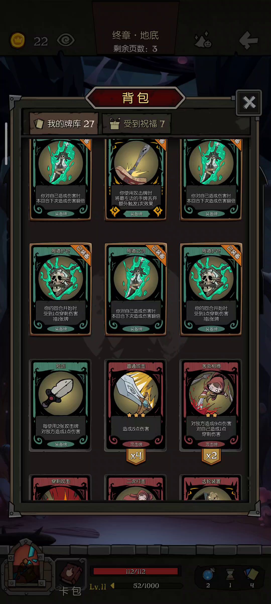 首先,先感谢官方大大以及各位小伙伴们的支持以及认可。当然也很感谢小伙伴们提出的建议和思路分析。 再次声明,因为本人并不是高玩,玩法随意,不喜欢刻意玩某种流派,分享的思路是提供给不喜欢玩流派且对于通关有一定难度的玩家的,同样,欢迎大家的指正和分享 本期是为了完善上期骑士,小女巫和药剂师使用了日记的问题,所以本次没有使用日记 首先是骑士,上一期我提到了可以玩殉道,所以起初想拿殉道的卡,但是没拿到,所以
