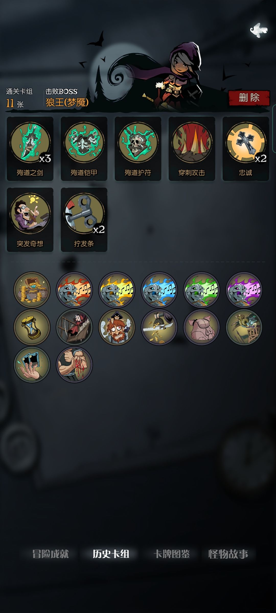 核心牌:拳击×2 盾牌格挡 应急干粮 旋风斧 剧毒匕首若干 打法:关日记,打普通,锤狼人,记得勇气≥名声,不然狼人不给打。大风车刷牌,普通攻击刷毒。大风车不可触发剧毒匕首,有装备栏多装备几张匕首。都玩到刷成就了,怎么过渡就不说了,每个人有自己的理解。 一章刷拳击就行,有匕首就拿。 二章拿匕首,和其他核心牌,没有匕首重开。 三章拿继续拿核心牌忘忧酒馆把牌组搞干净。 这个打法后边给狼人上毒费手,但成型