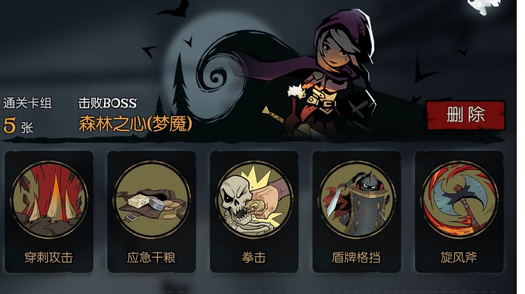 之前一直没时间打,今天没啥事把骑士小红帽通关了,发现有个无脑的方法,起手第一个选枭兽(变幻卡牌的那个),中间随便选,第三个选驯鹿勇士(获得一张牌加2生命那个),打完怪一定要拿卡,也不用挑选,随便拿,探索技能CD好了就用,进战斗后就可以无脑扔卡了(根本不需要看是什么卡)最后你的血比boss还多,顶多就是输出慢一点,猪撞一次200+不是梦!!!