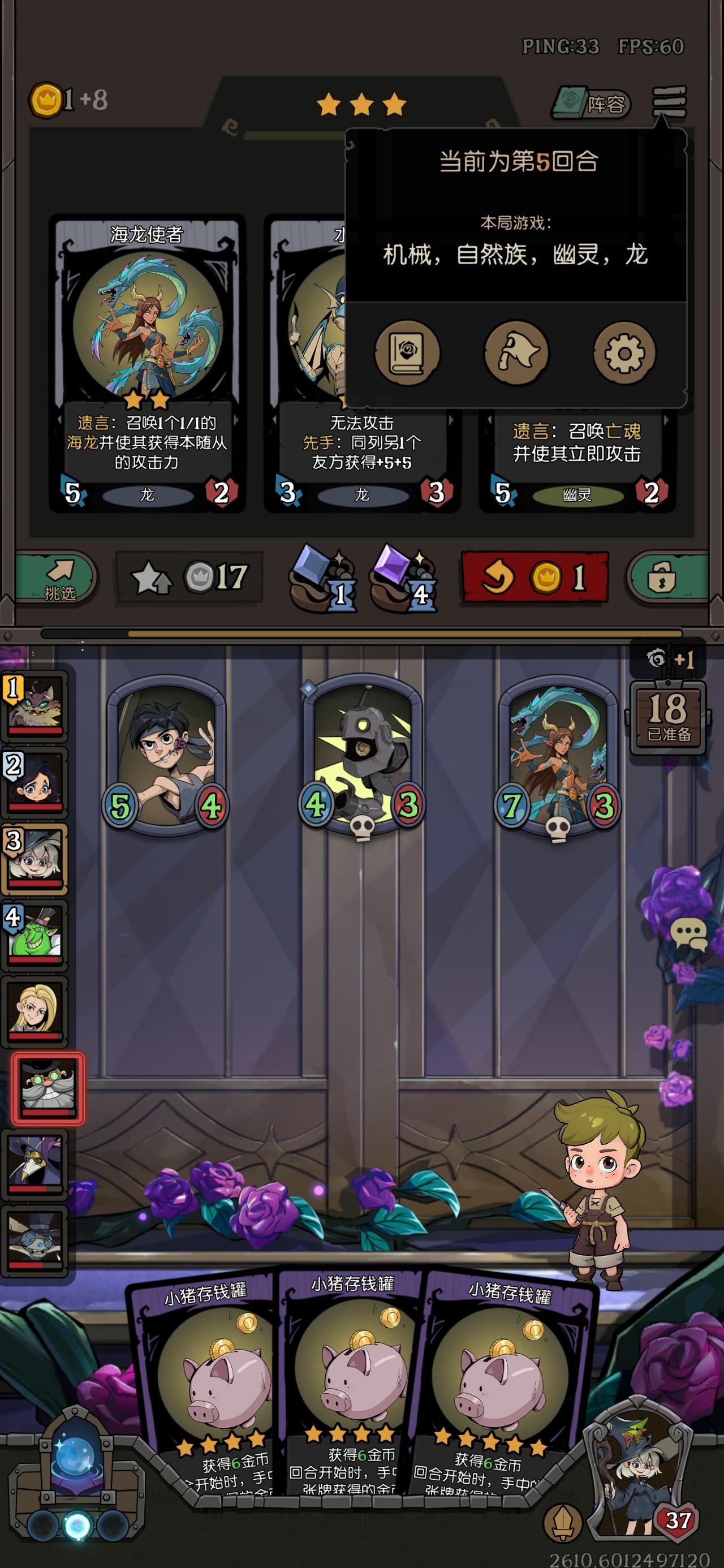 第三回合三张小猪存钱罐,还拿到了奥秘法袍,只可惜结束太快了,再多两轮应该还能复制几个