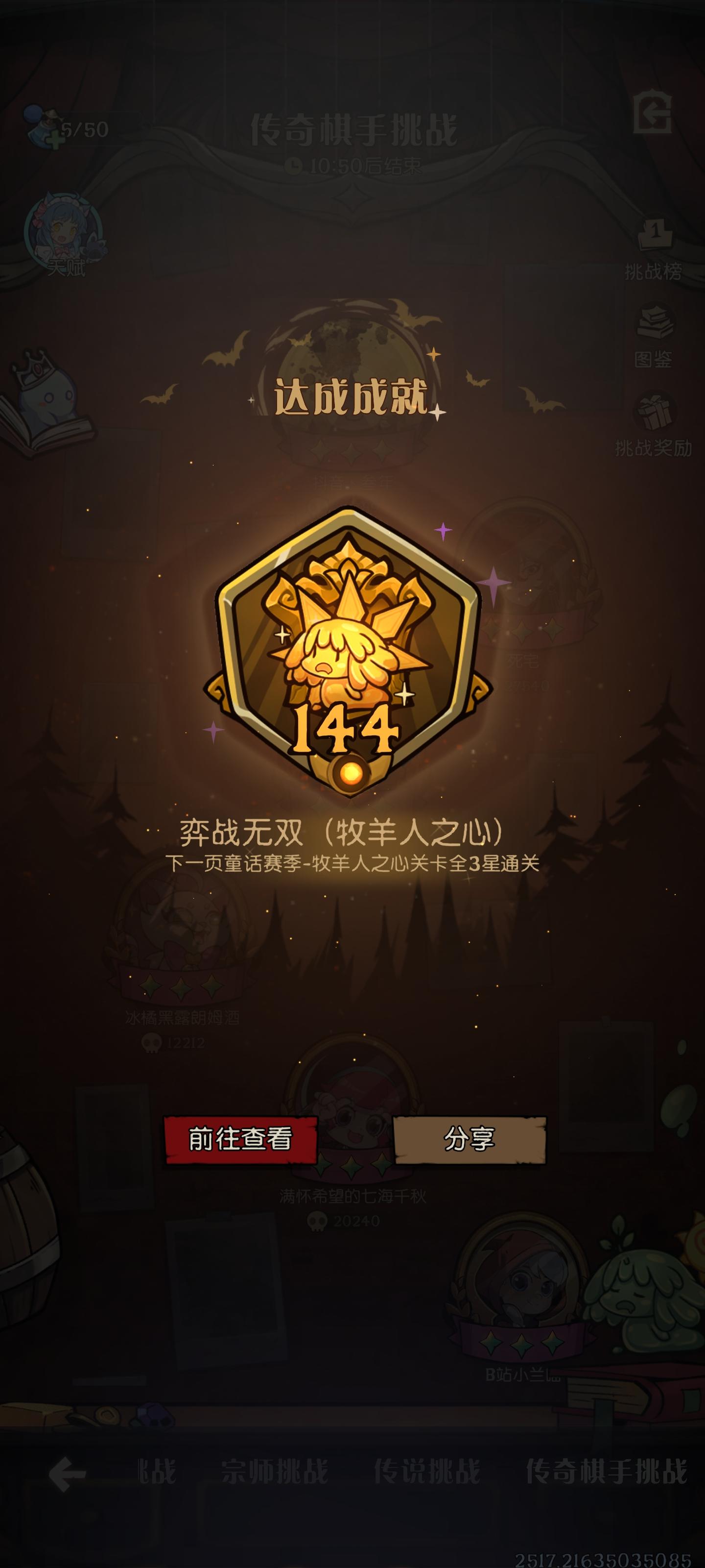 打到144之后就把天赋点了一下,好像每一次荣誉关卡都差不多能点满(条件是所有关卡基本一次性三星)我个人比较喜欢一边点天赋一边打,这样大概率能一把三星过(然后策划发现我没充值也能144就把这次阁楼难度调高了)