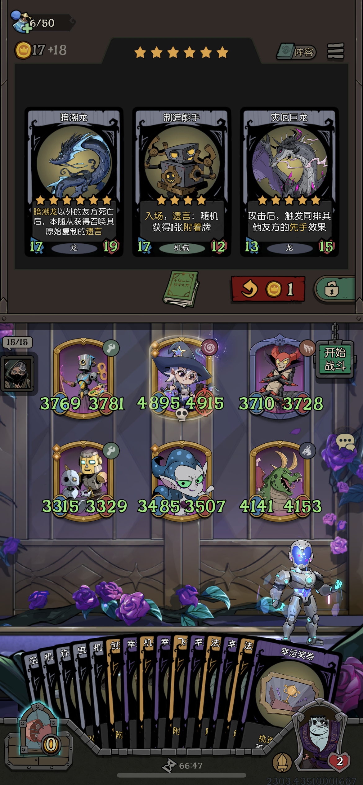 0️⃣原来天赋点的异世界的邀请函可以不用到六星就能打开。抽错了牌突然打开了商店,懵逼了1️⃣封面是宗师8的克拉肯 克拉肯的技能有点难受攻击召唤三只触手(触手有遗言,移除击杀者,同时克拉肯获得移除随从的身材)习惯了养大哥,然后冲本,结果就是在这里稳定掉血。(eg.要是都能像传奇一样把阵容放出来有个参考,会人性化一点。)2️⃣传说4-153️⃣传说6-15 在传说6-12的时候身材是500+