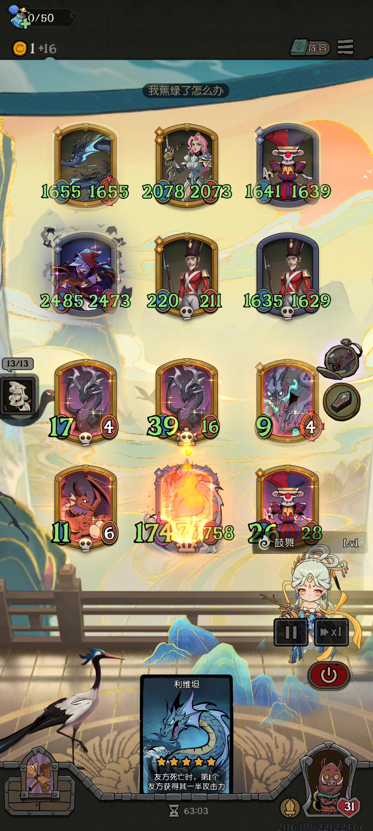 打了好像8次?终于3星了。点满了回血、血量上限,甚至为了他专门点了那个限制对方第一只不动的咒术。最后还是赌运气,前面8个回合全部卖血,靠猪被动省下来的血量撑到8回合一堆钱上5本,直接找了2条黑龙和小丑,上了前面4本遇到的幽魂龙开打。 12回合贴了2张贪食龙给利维坦,再加一个焊接,看了下,好像不锁刺客还是打不过,锁了丫的。