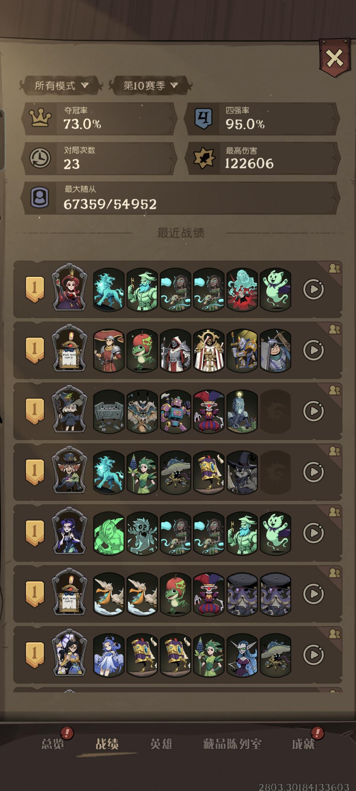 赢得还挺惊险的,打的时候有点过载了,话说缝合保护者给鱼人刷盾会不会更好[表情_思考][表情_思考](好像把保护者附着给其他随从依旧没法给自己套盾,一开始还想着卡一下文字游戏,试试看能不能玩一下不动飞龙,也有可能是我太倒霉了?)