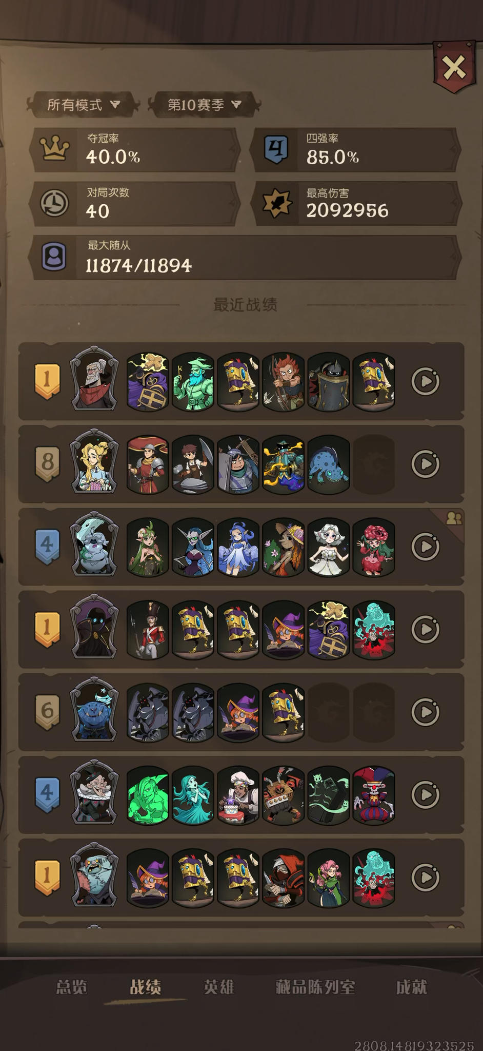 赢得还挺惊险的,打的时候有点过载了,话说缝合保护者给鱼人刷盾会不会更好[表情_思考][表情_思考](好像把保护者附着给其他随从依旧没法给自己套盾,一开始还想着卡一下文字游戏,试试看能不能玩一下不动飞龙,也有可能是我太倒霉了?)