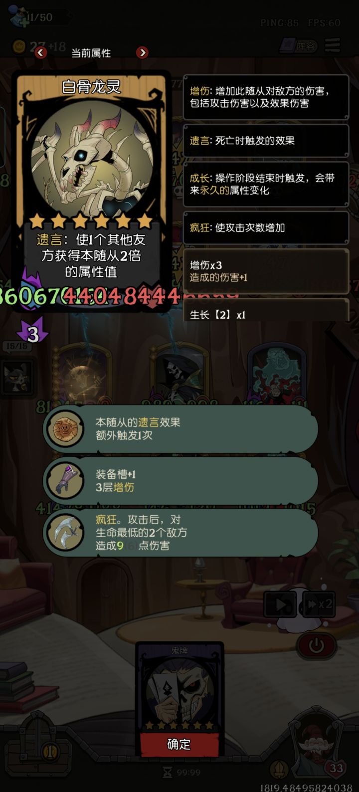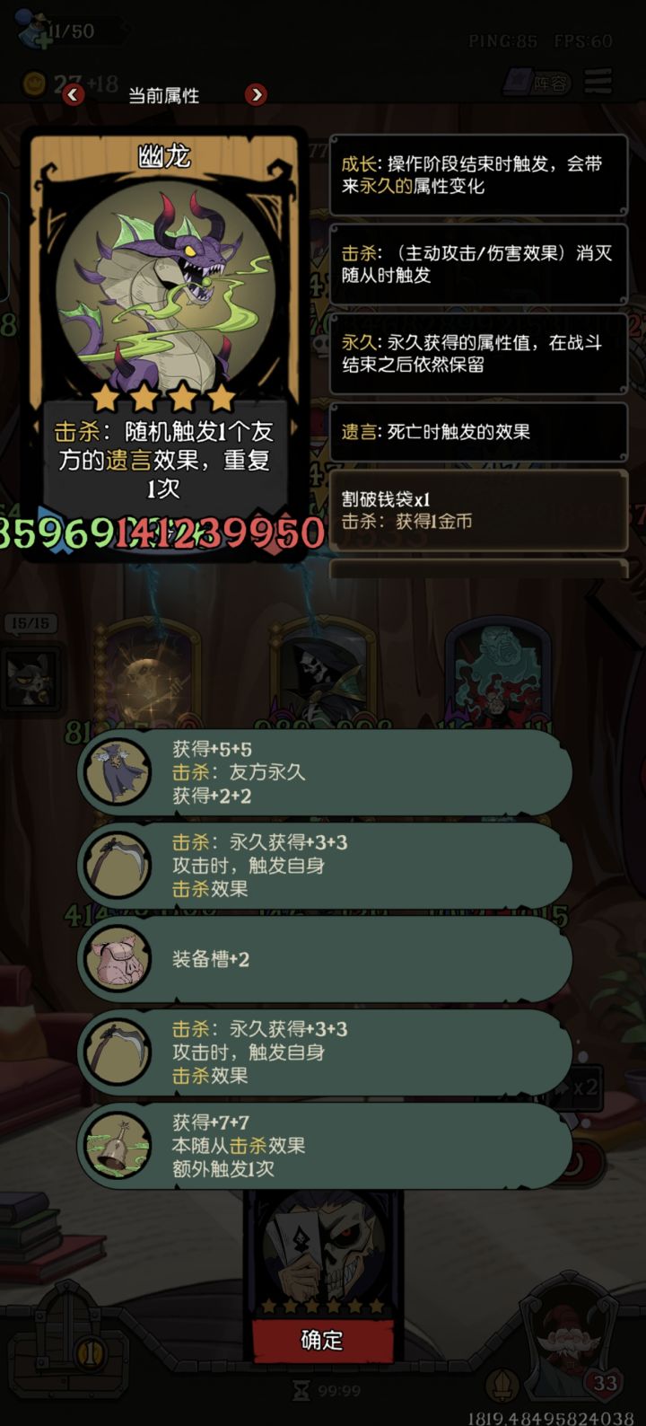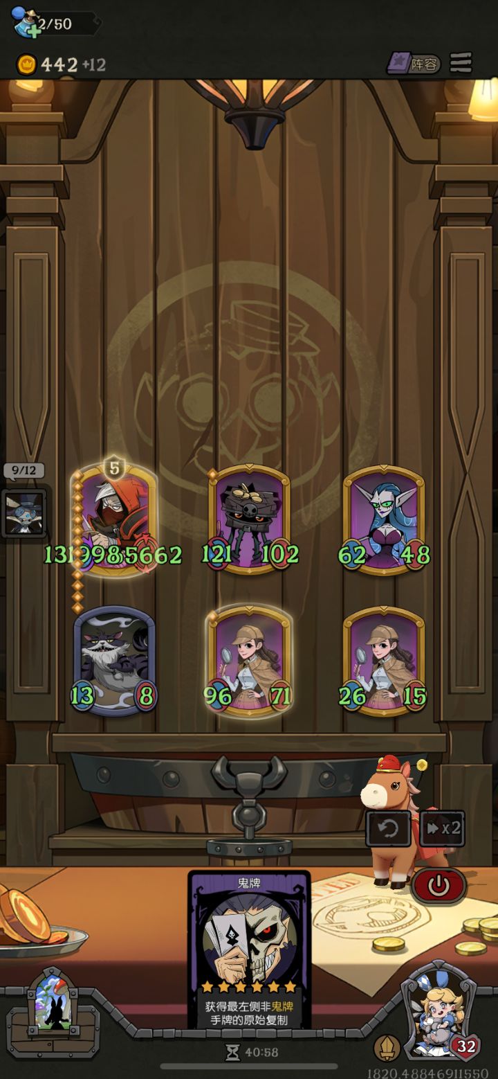 天赋就点了升三级天赋给四张牌,疯帽匠加重生机器人前期疯狂压力我方还极度缺经济,前期只能卖血上本,只有鲨鱼恶霸能抗住,前期只能靠野猪加鸽子还有遗言给附着牌的机器人提供经济从,第九回合开始对面就开始不当人了,最后没个五六万的身材根本抗不下来