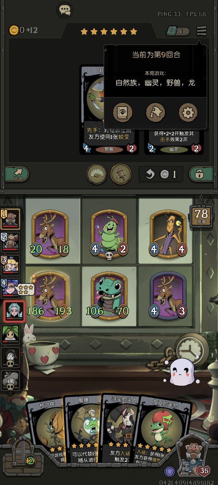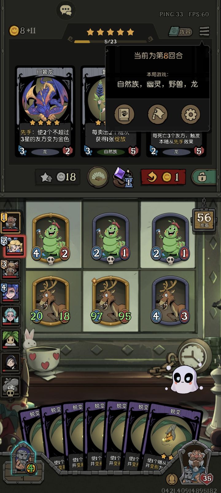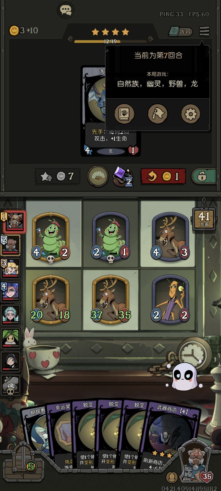 主要思路是1级拿3张虫人守卫,合金入场就有2张金野兽。然后2级开奖券,3级找毛毛虫攒蜕变。找毛毛虫过程中攒入场牌,变出金蹦蹦鹿+买一个白蹦蹦鹿,直接速5级变出狗头,倍率加经验速6成型。这个思路上赛季就发过,但上赛季7种阵营中有4个阵营一级有3张随从,且需要找4虫人守卫弄出3金野兽,暴毙概率有点大。现在全改成每种阵容只有2张一星随从,且只需要找3张,找到概率高,实战极度丝滑。成型最快的阵容,5