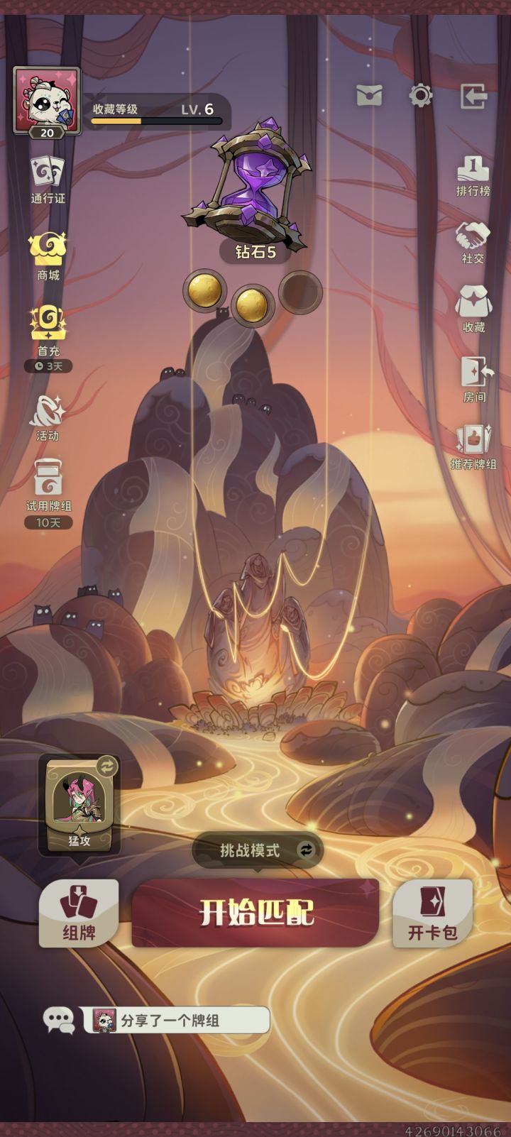死神本尊不难打,小红帽死神才难打!两者最大的区别就是本尊的伤害叠加很慢,并且爆发是在五血被动的时候,但我这套很好把控伤害没有一把让对面打出被动的,而小红帽就不一样了,伤害叠的飞快吃不消,十把遇到五把死神流,本尊有四把我都吃分了,唯独小红帽的打不过建议把宝箱削一下,死了只产生一只就好打了个人氪了月卡通行证外加12块凑了200糖果换了花匠卡包,然后把卡组外的卡全分了才凑出这套卡的,估计等我这套玩