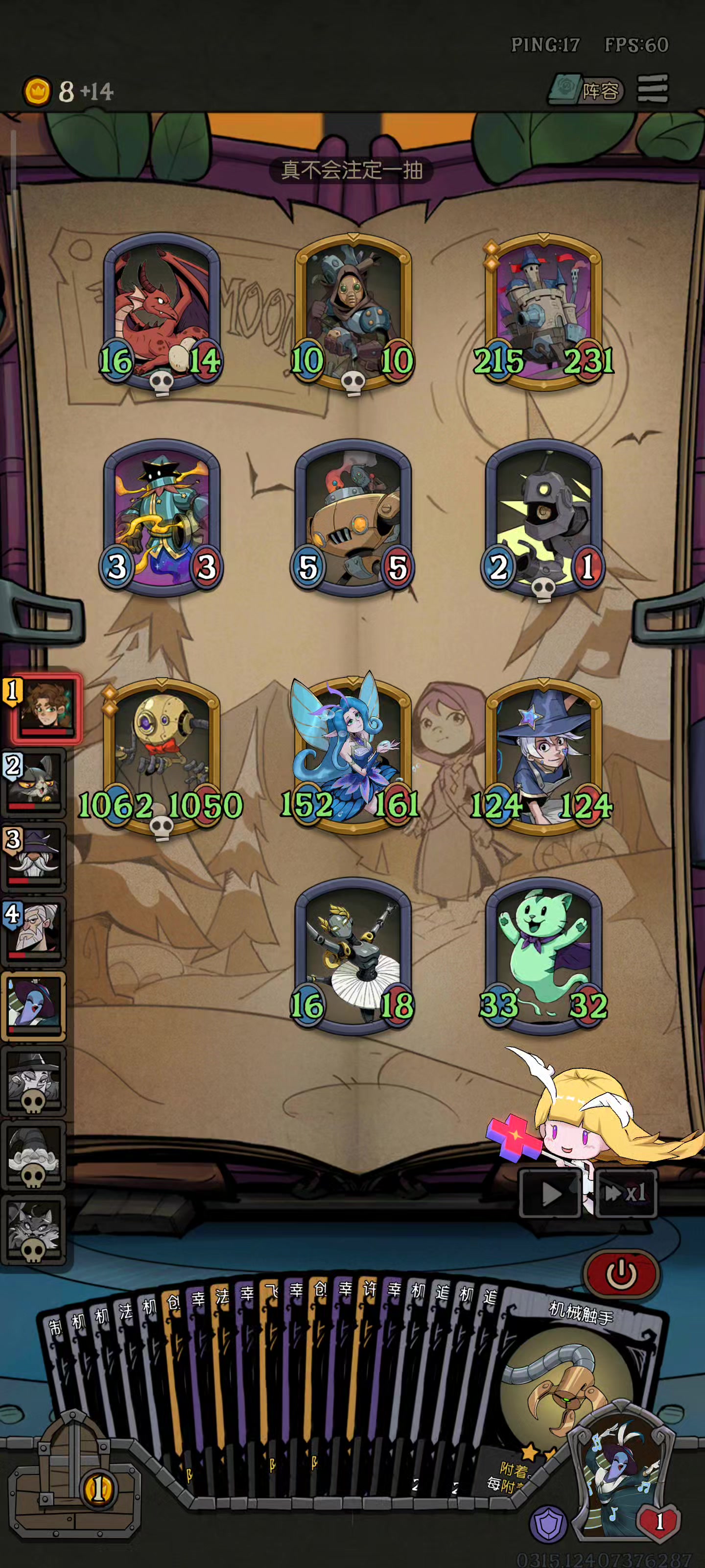 娱乐模式选择野兽+炼金师进游戏,快速升本到五本弄到金寻宝鼠和疯狂实验员加上猫头鹰开始启动,运气好会提前遇到可选升级奖励的商店(通常最后一次商店必然会刷出来这个选项),就可以正式无限刷了,利用前期准备好的金币去刷魔术怀表快速轮回,途中遇到准备:增加1-2金币的咒术牌直接全拿立刻使用,遇到鬼牌全拿,如视频这样操作即可。这样就可以实现∞刷金币和怀表,后期再启用失眠羊刷商店随从的属性即可达到轻松破万。 为