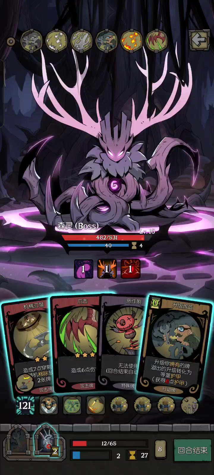 还以为还以为梦魇有多难呢,前面怕的要死。不过最开始确实很难打。越到后面那个卡牌多了,刷那个基础法力啊都是随便秒的。我买了一张那个扔所有牌,然后触发所有咒术牌的那张花了50多金币,然后就是打折买的,然后不小心当成这个减速牌换掉了。啊,就是把它换换成另一张牌,然后不小心换掉了,到后面发现一个问题就是呃你牌越多嘛,你牌越多,你的法力就越多,所以后面疯狂买一些低价的垃圾牌,乱买买一堆垃圾牌啊,买一张就是可