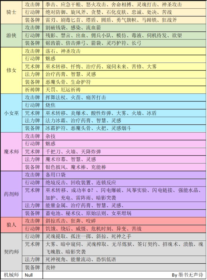 在圣诞节活动期间,在二章都会出现“圣诞老人的疑惑”这个事件,点开就有三个打乱的礼物事件,每个事件都可以卡牌三选一。卡牌里不包括本职业卡牌,会获得其他职业的牌,从范围来看价格最高为86,没有高价牌,并且其范围并没有超过日记诅咒魔典的范围。其范围按职业分类如下表。如有缺漏,请在评论补充。👀