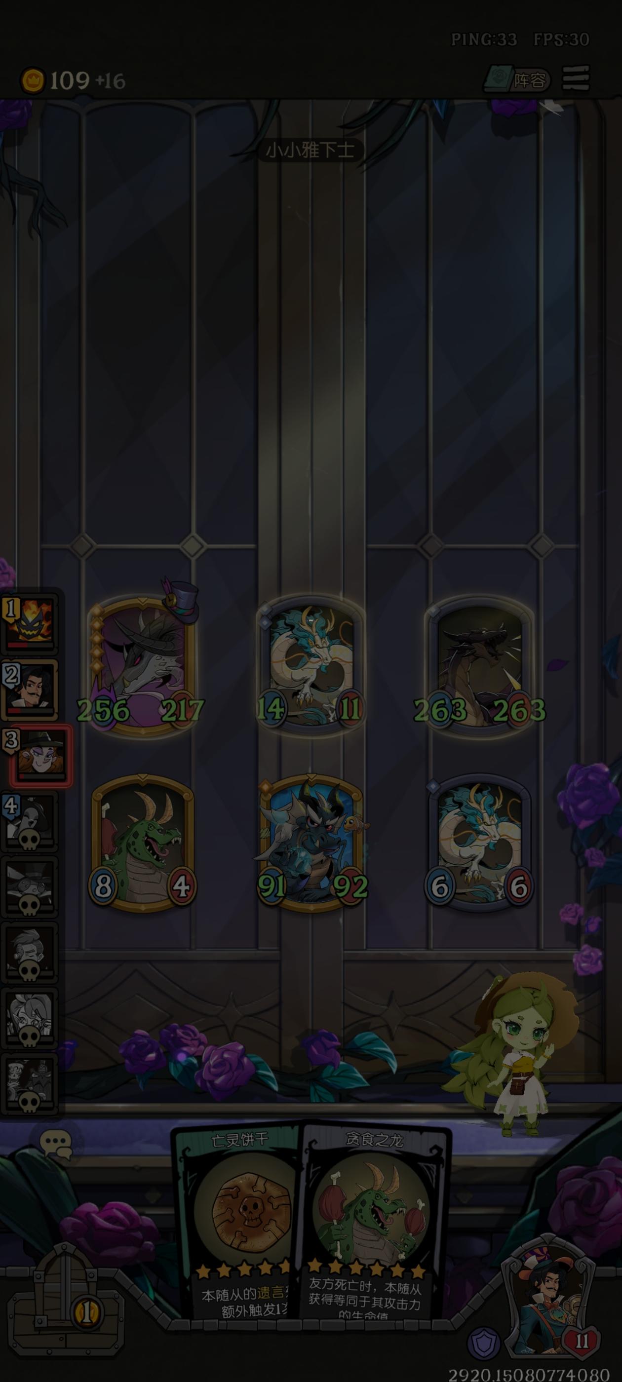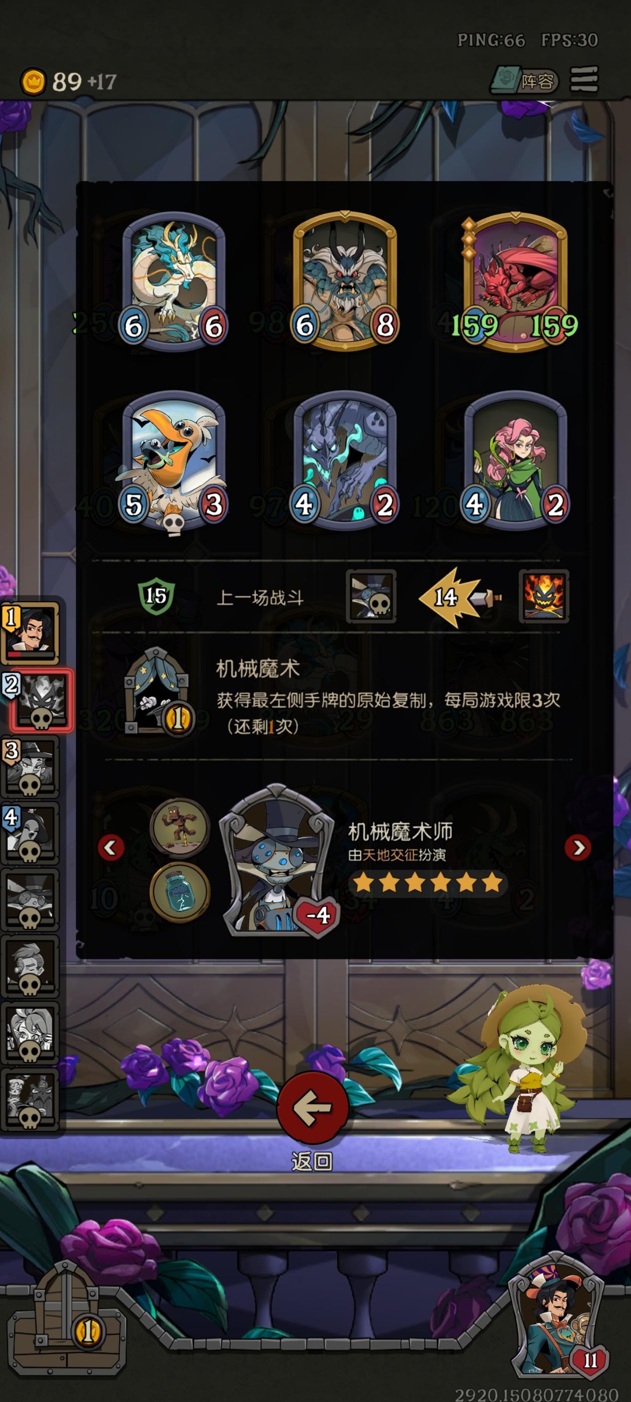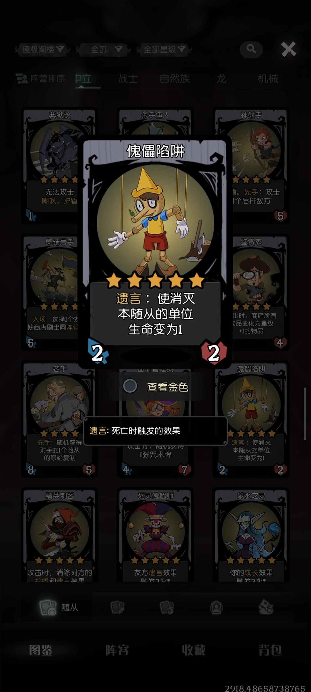 有鹈鹕和两个亡魂棺,遗言双倍先手双倍金财宝龙先手装备遗言装备,一回合拿了75金币然后然后打尸体100金币,还好一回合转型了紧张