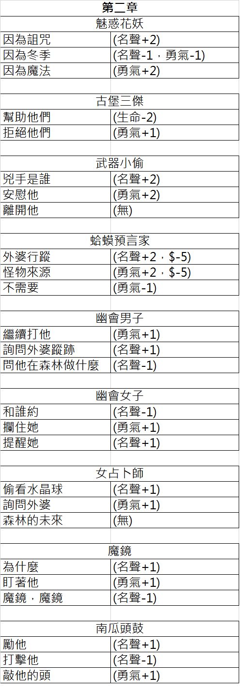 新版 對話選項 (第一章~第三章)