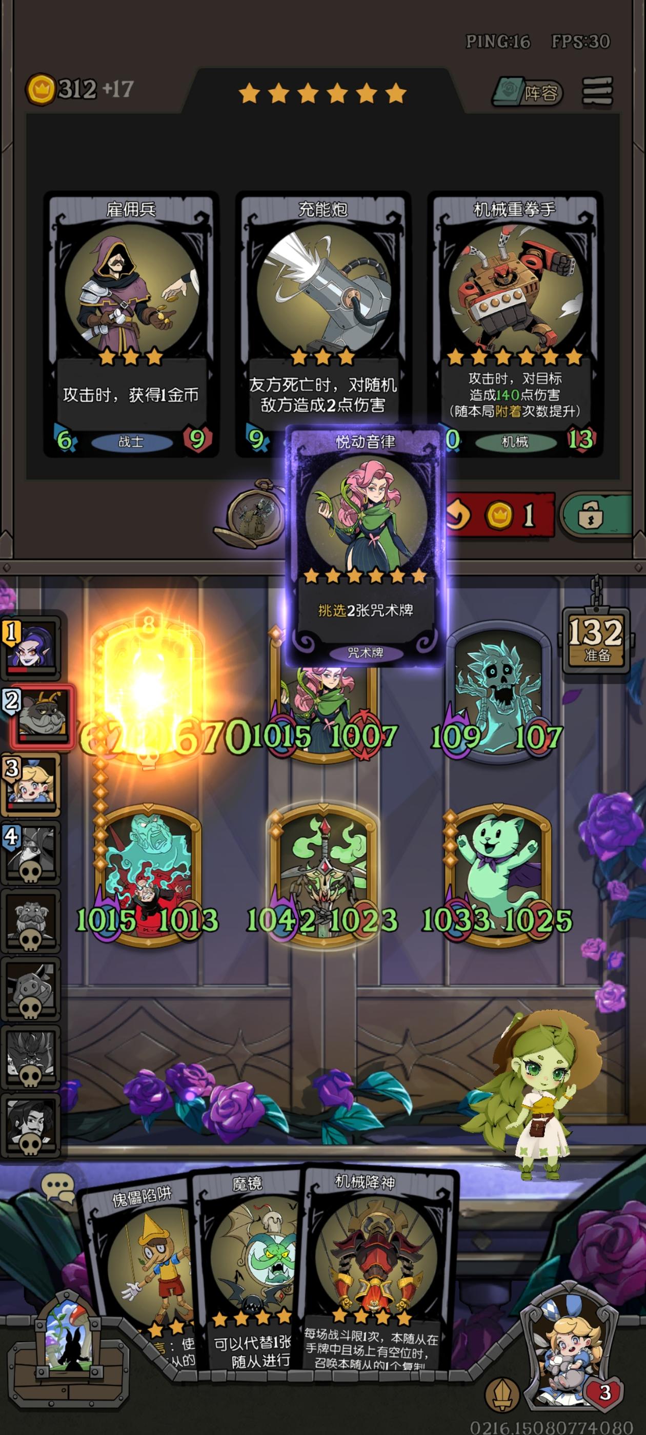 一开始选英雄的时候看到舞会明星有能量电池升级快,看整容的时候只知道龙和战士能组在一起,虽然持盾战士被削了只能给战士随从多盾,但还是决定玩先手龙,毕竟灾厄巨龙组收藏家相当于电表倒转打钱还是很快的。中间女巫珍宝看到出了缝合技能就拿下了,想着后期给灾厄缝神射能直接拿到第一波收藏家的钱这样子不亏。后面收藏家没看到,看到了舞伴伴唱鸽手,出第一只伴唱鸽手的时候想着没那么多钱开技能,而且舞伴多了也放不下没什么用