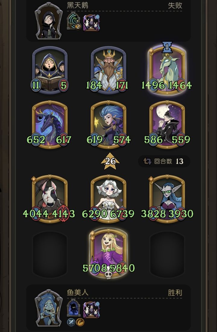图6:自然+幽灵+野兽,玩这个真的超爽。全场直接10w+,成长效果全挂给茉莉,然后茉莉带了两个怀表。触发一次全场加1w+。话说倒转局魔法学徒上限真的高,靠技能拿了6个猪包,还有可能拿到舞伴,这英雄玩倒转非常舒服,仅次于舞会。