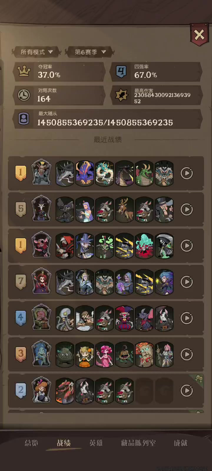只可惜第一名没打过被淘汰的第四名,没把傀儡师放下去😂属性刷到了300万,要是第一名撑下来属性100%能破上千万