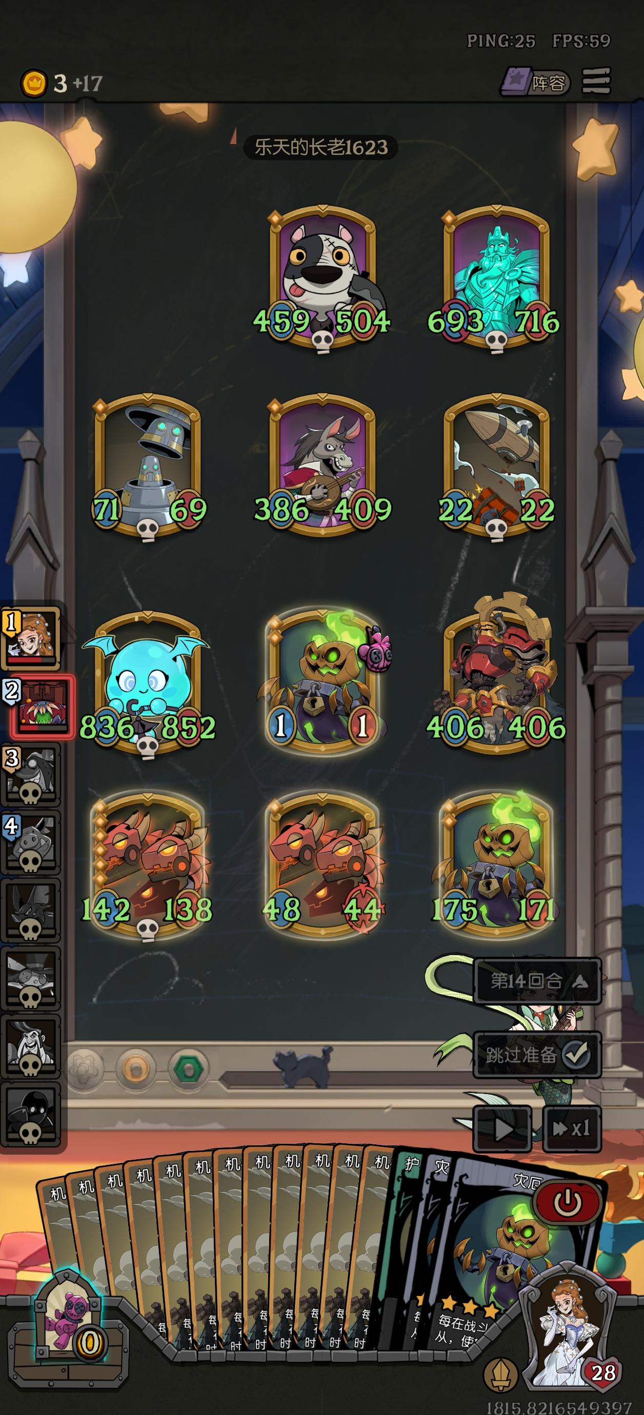 最后一回合对面把古堡的身材吃给魔女了,但凡换一个我都打不过他,跟我12个金机械降神拼数量,直接36血入死。
