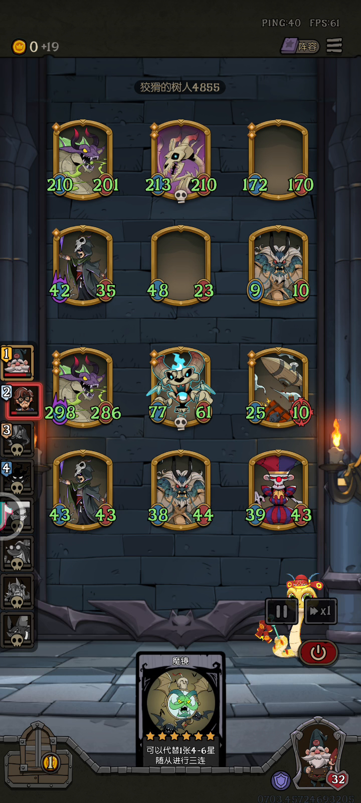 9回合直接成型,成型后全程连胜满 前期小石精+含羞草+浣熊+剑兰,第8回合直接5级 根本不怕高数值怪兽,因为第9回合阵容成型(金色剑兰其余白板),木槿+神射手一轮打完后排清空,灾厄A完直接全场打完,第9回合一轮直接扣27血 成型后完全不给任何人发育时间,第9回合开始遇见我就是扣27血,极其残暴 对比神射手附着鱼人,不需要叠盾 对比灾厄+小龙+白龙,剑兰可以给灾厄奶血量,灾厄无脑叠疯狂即可,根本不需