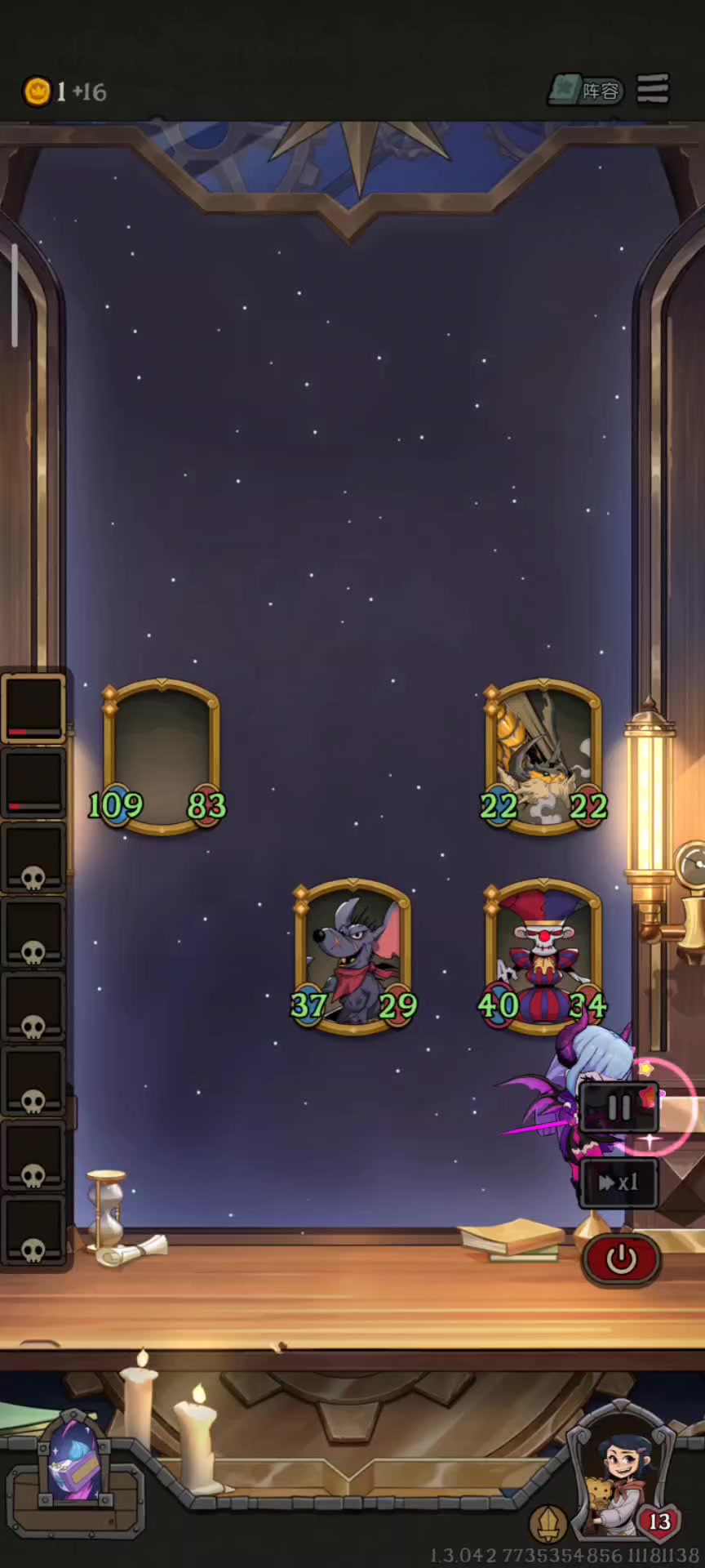 我2本时摸到了攻击放3炮那个武器,刚好商店有个幽灵,就寻思着这家伙有疯狂能多放一炮,就小养了一下,中期摸到一张猎豹,开始倒转刷了几十点属性和吸血刀,给幽灵小刷了几百数值,后期出了猫和戏法师,整了4个变大饼干[表情_斜眼笑]为了防魔女我给幽灵和戏法师各吃2个,疯狂刀也是各一个,没想到反而被对面杀一个,魔女带走一个,于是梭哈幽灵5刀砍完